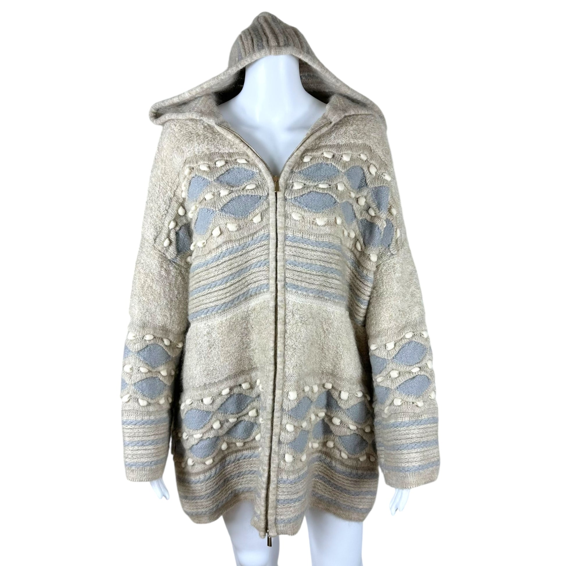 Blumarine Gray & Ivory Patterned Oversized Knit Cardigan
