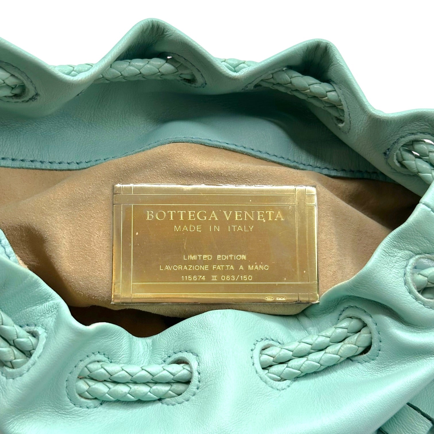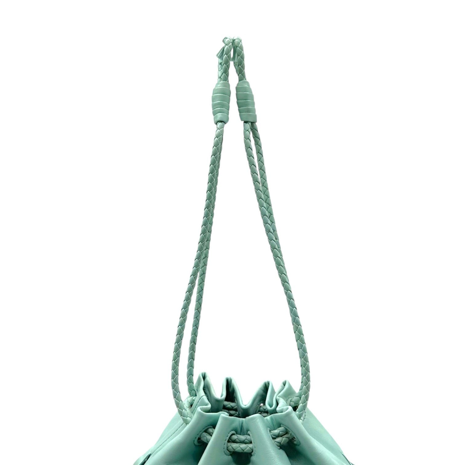 Bottega Veneta Aqua Blue Leather Fringe Drawstring Clutch Bag