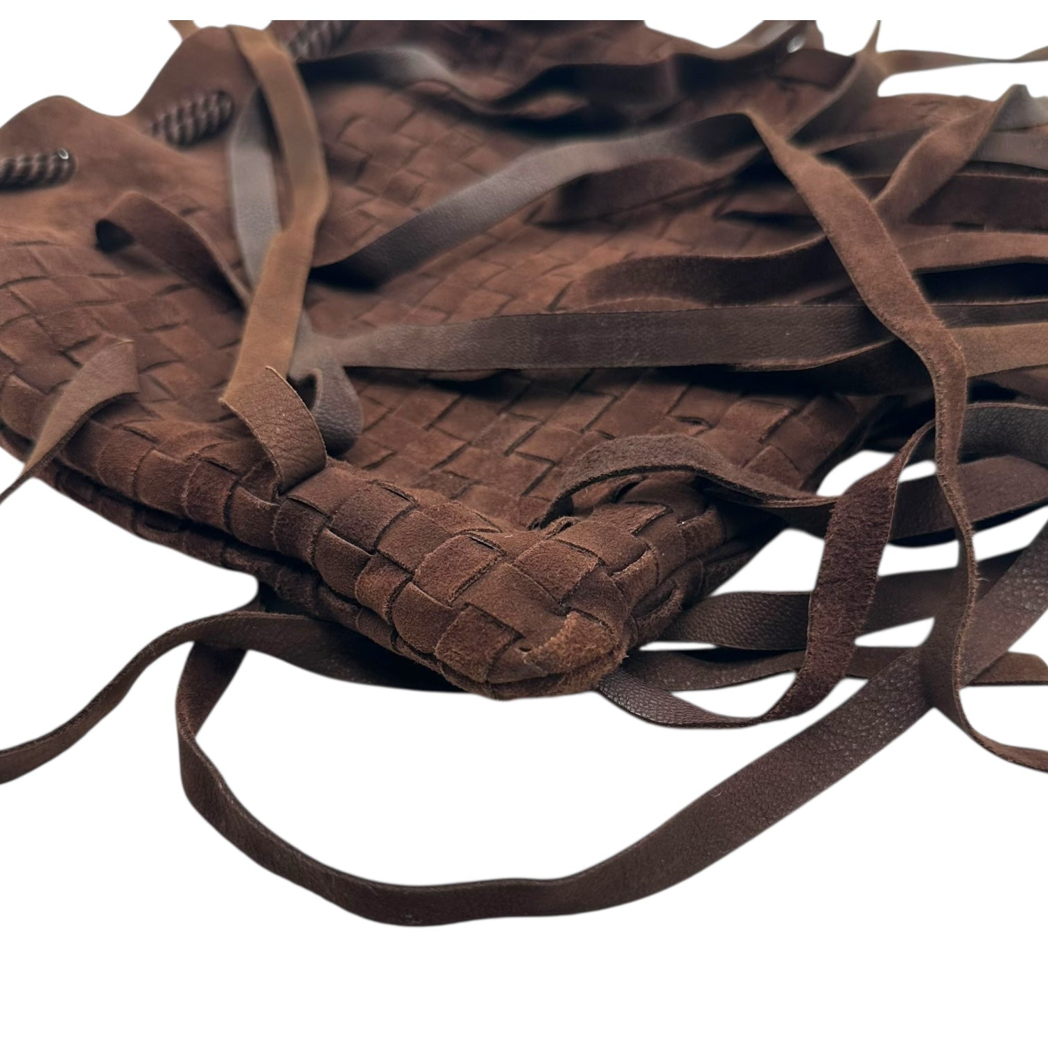 Bottega Veneta Brown Intrecciato Woven Suede Fringe Trim Clutch