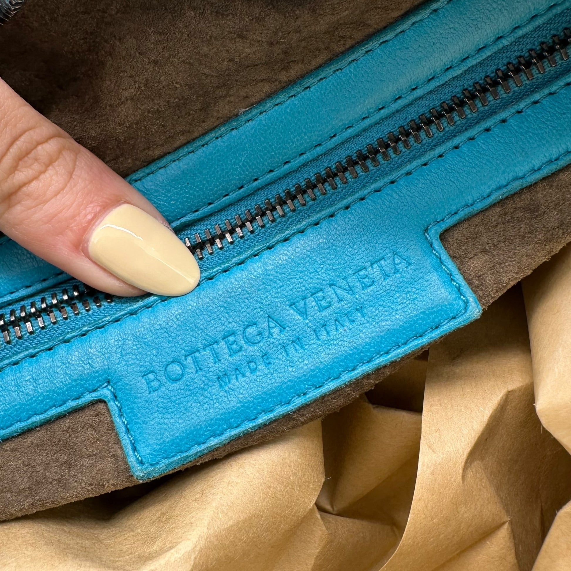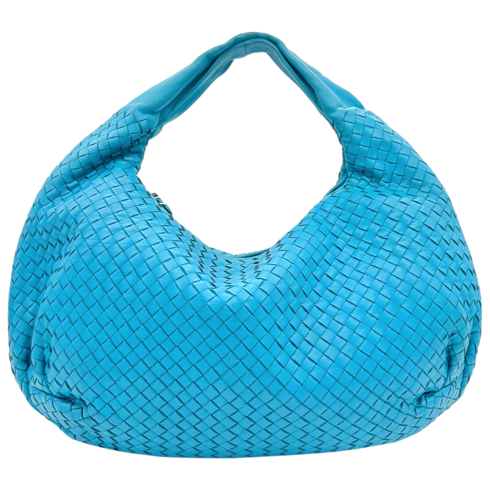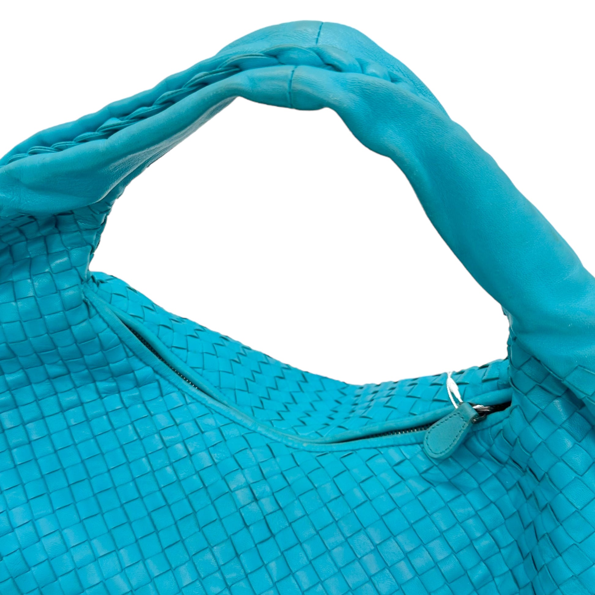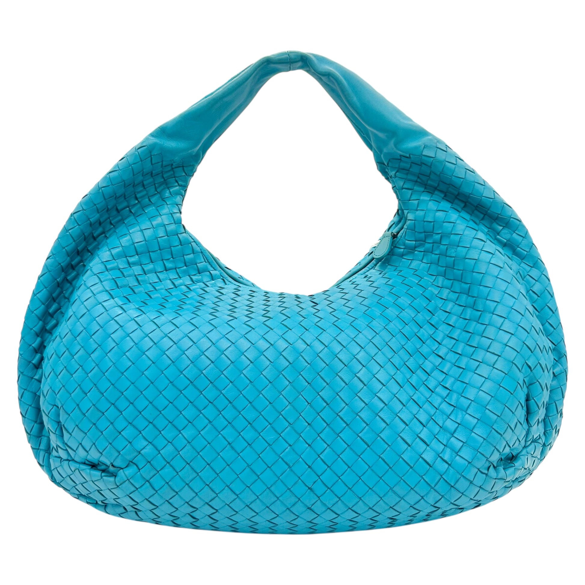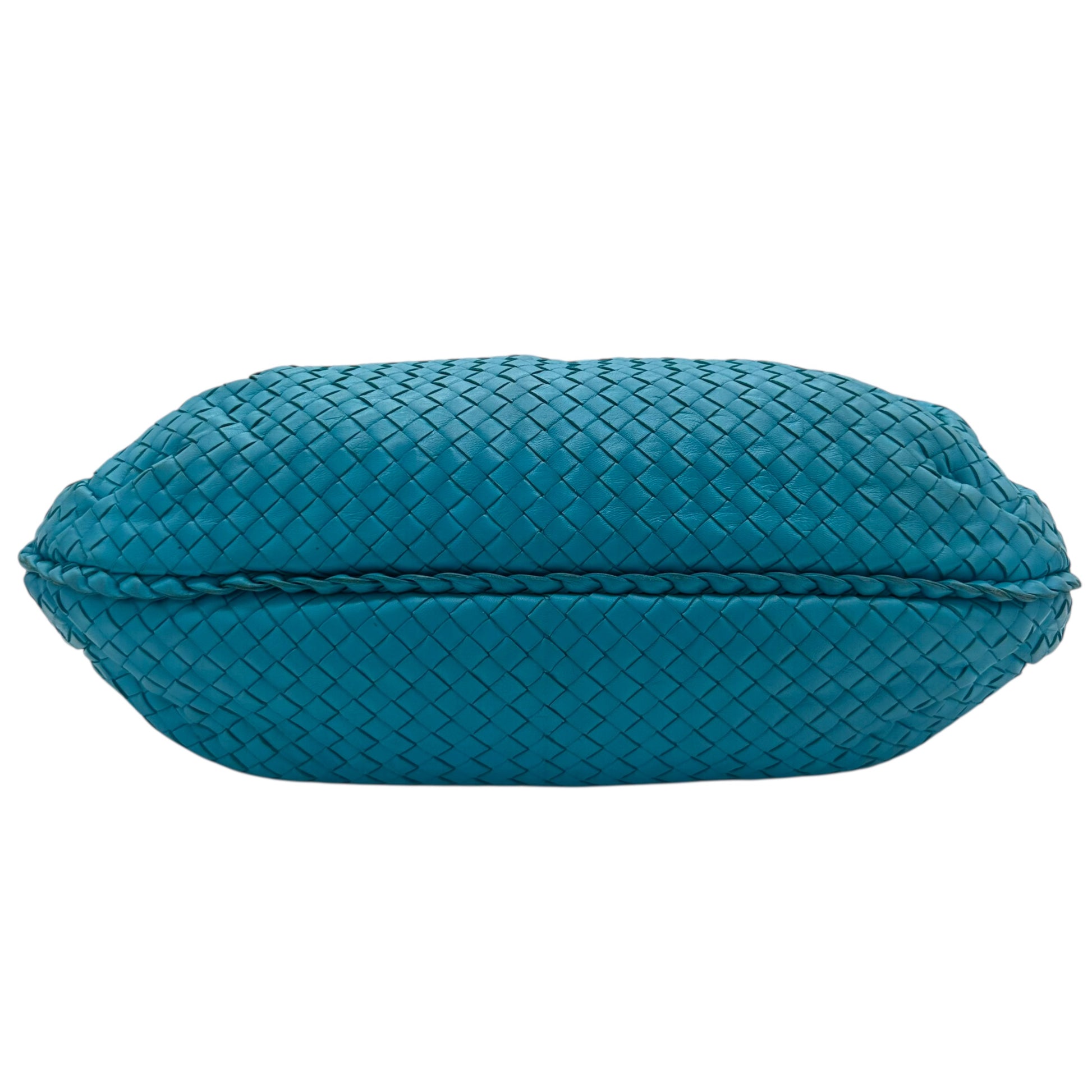 Bottega Veneta Teal Blue Intrecciato Hobo Shoulder Bag