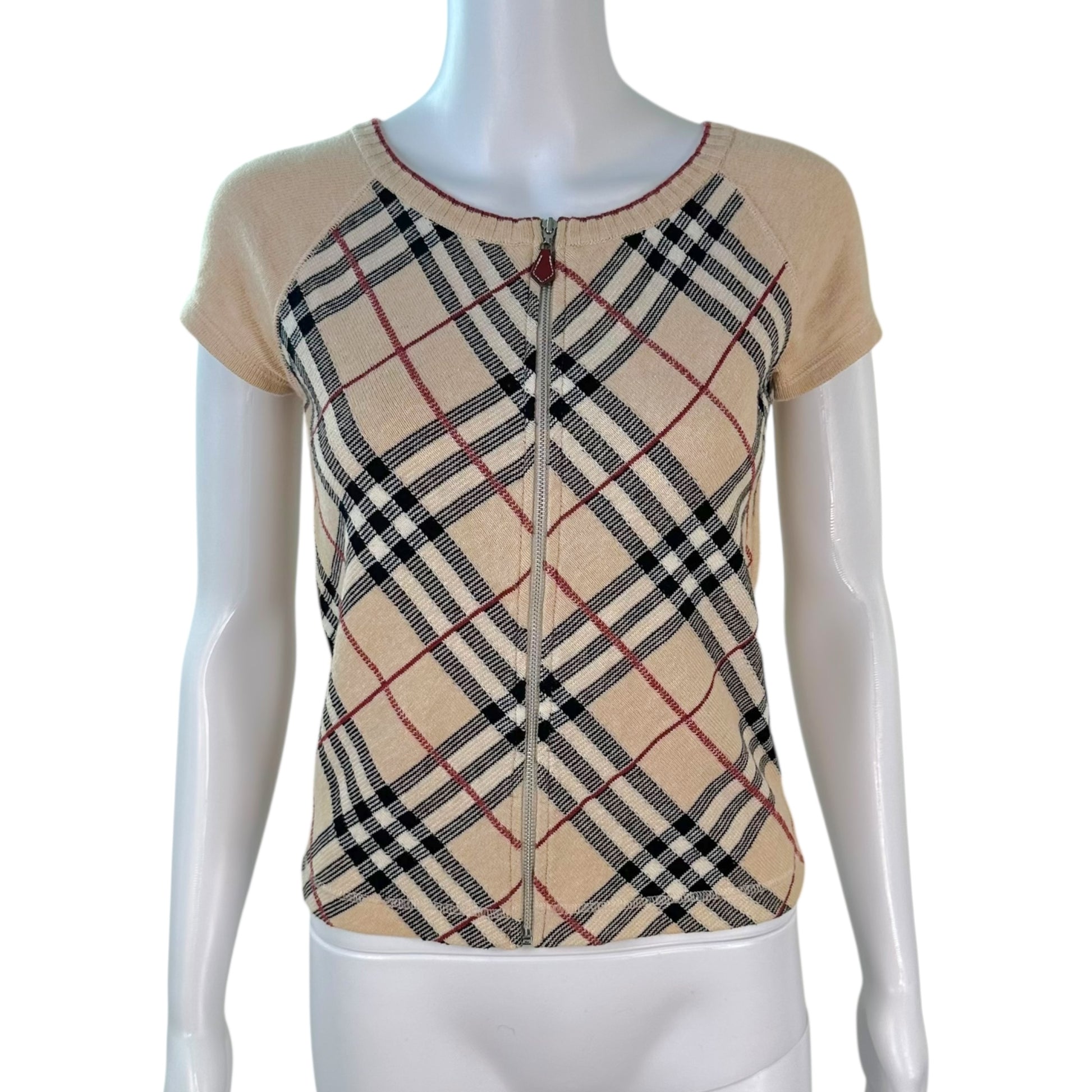 Burberry Blue Label Classic Nova Check Plaid Knit Zip Top