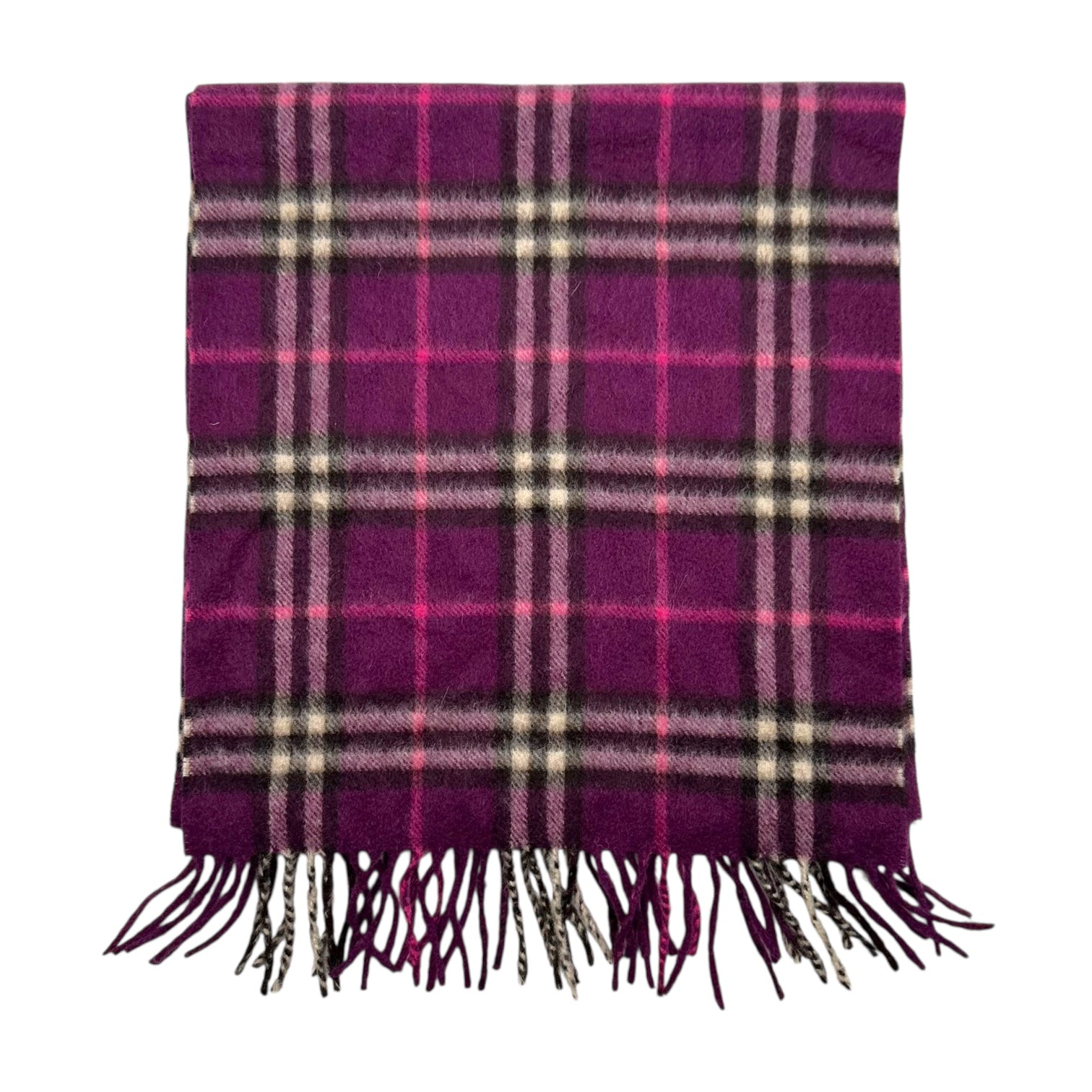 Burberry Purple Nova Check Plaid Cashmere Scarf NEW