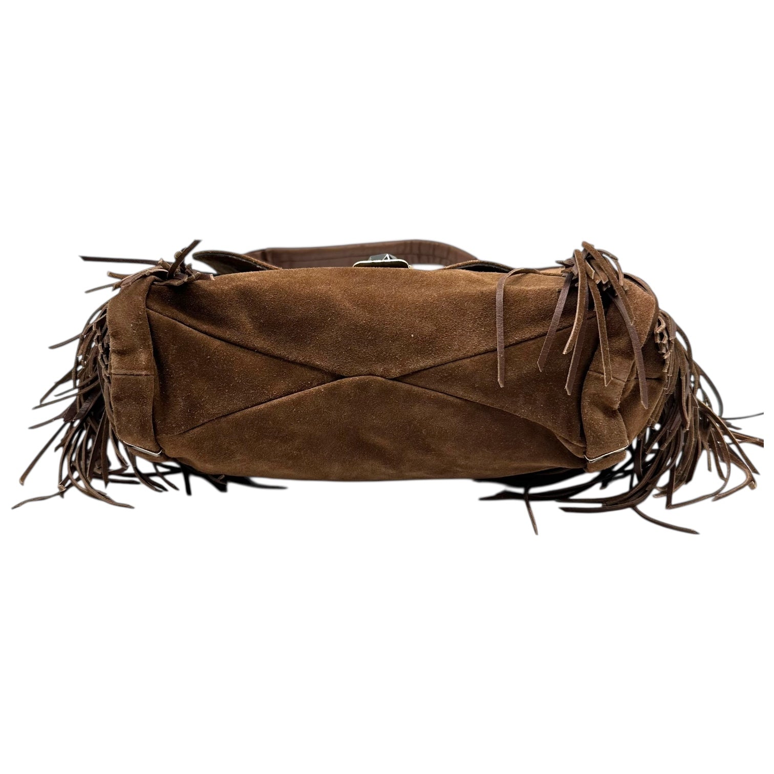 Celine Brown Suede Fringe Trim Shoulder Bag