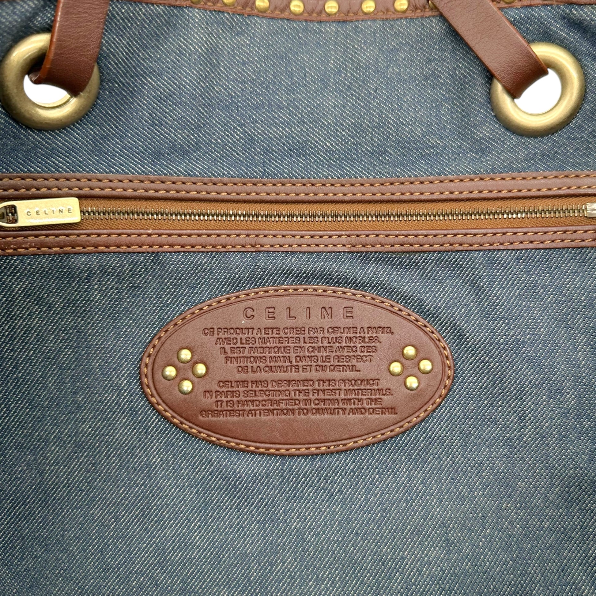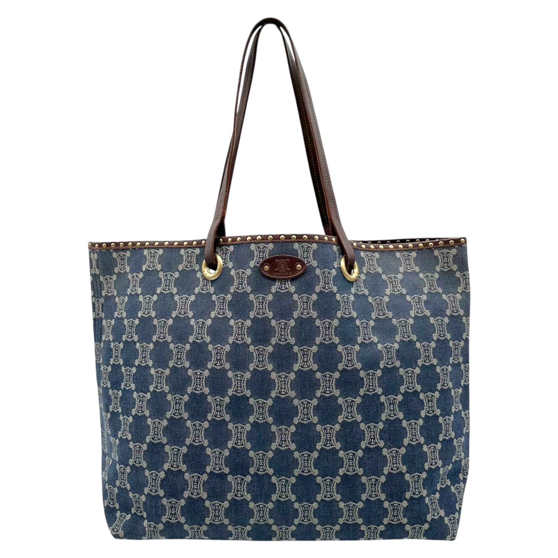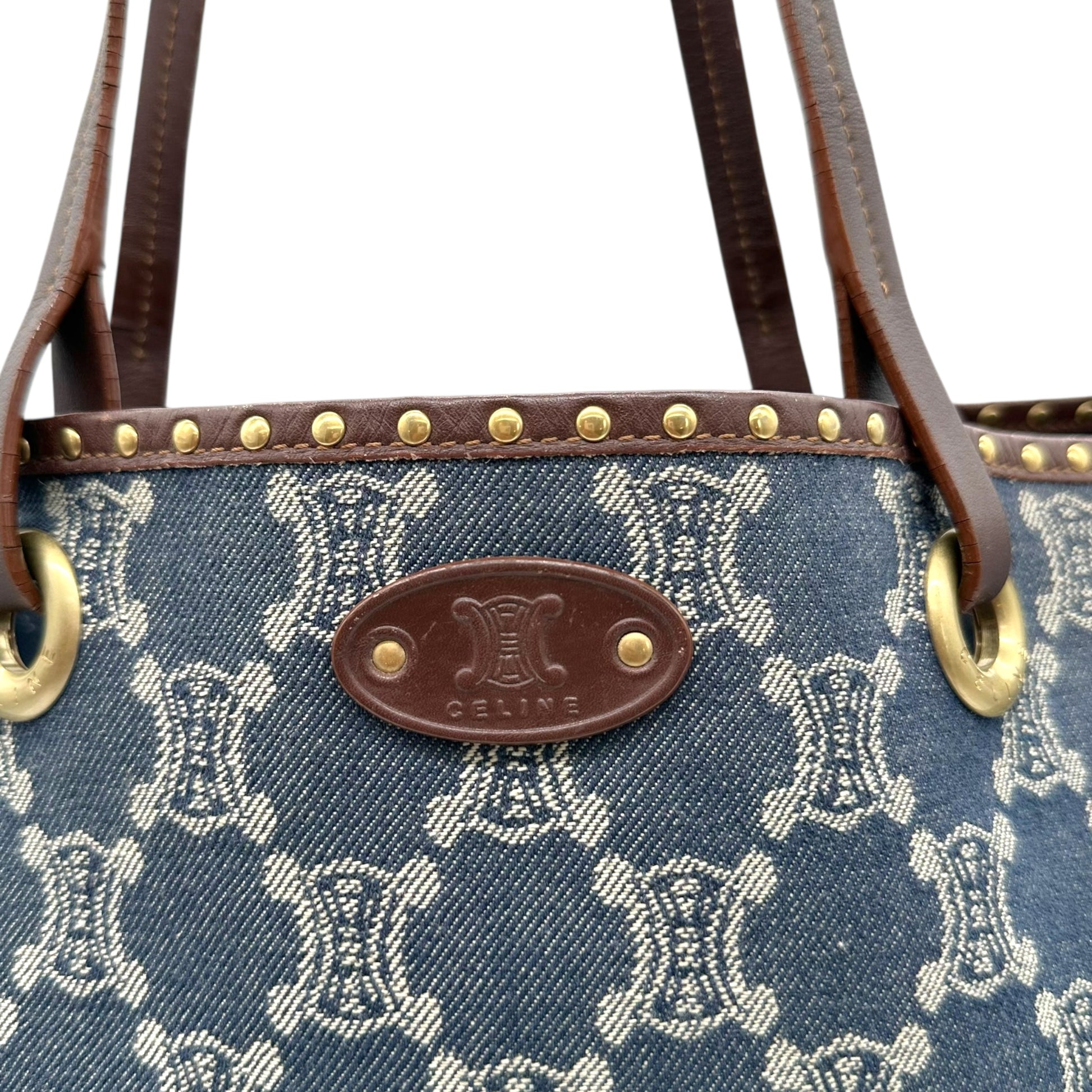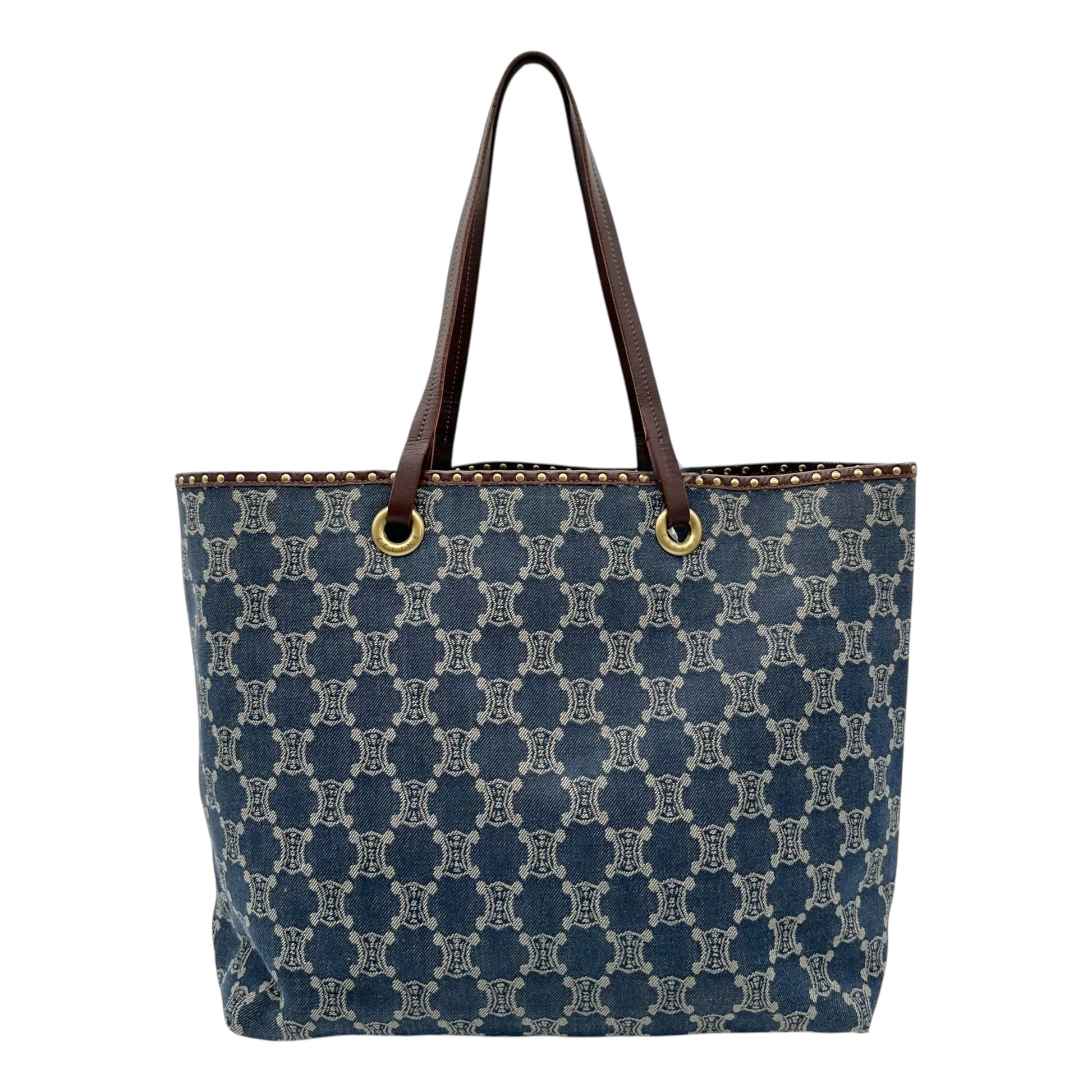 Celine Denim Triomphe Monogram Studded Tote Bag