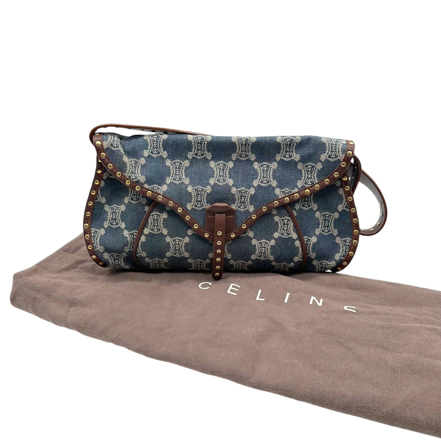 Celine Denim Triomphe Moogram Poulbot Shoulder Bag
