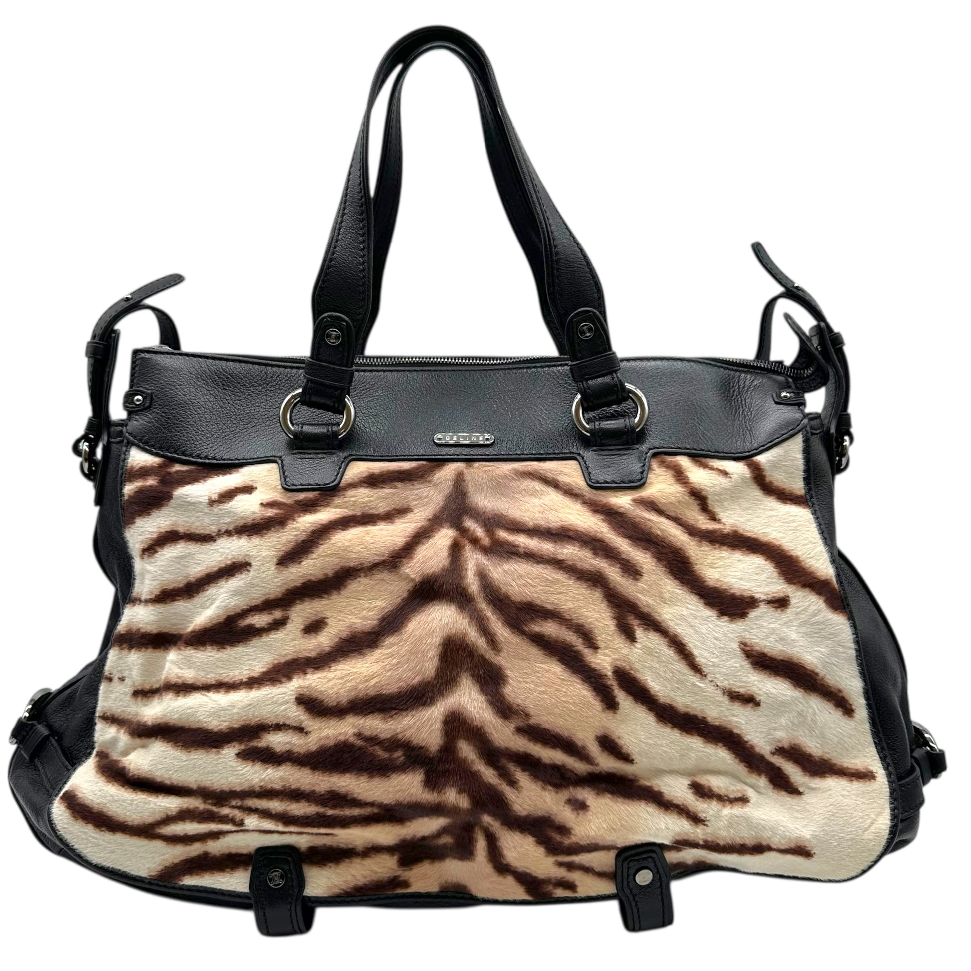 Celine Zebra Print Ponyhair & Black Leather 2-Way Tote Bag