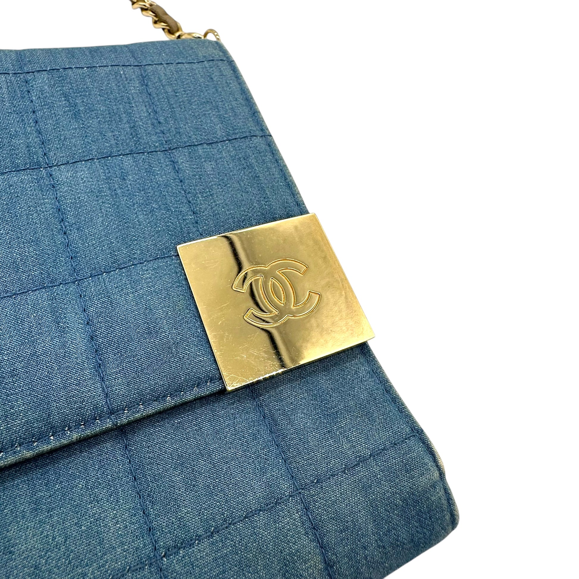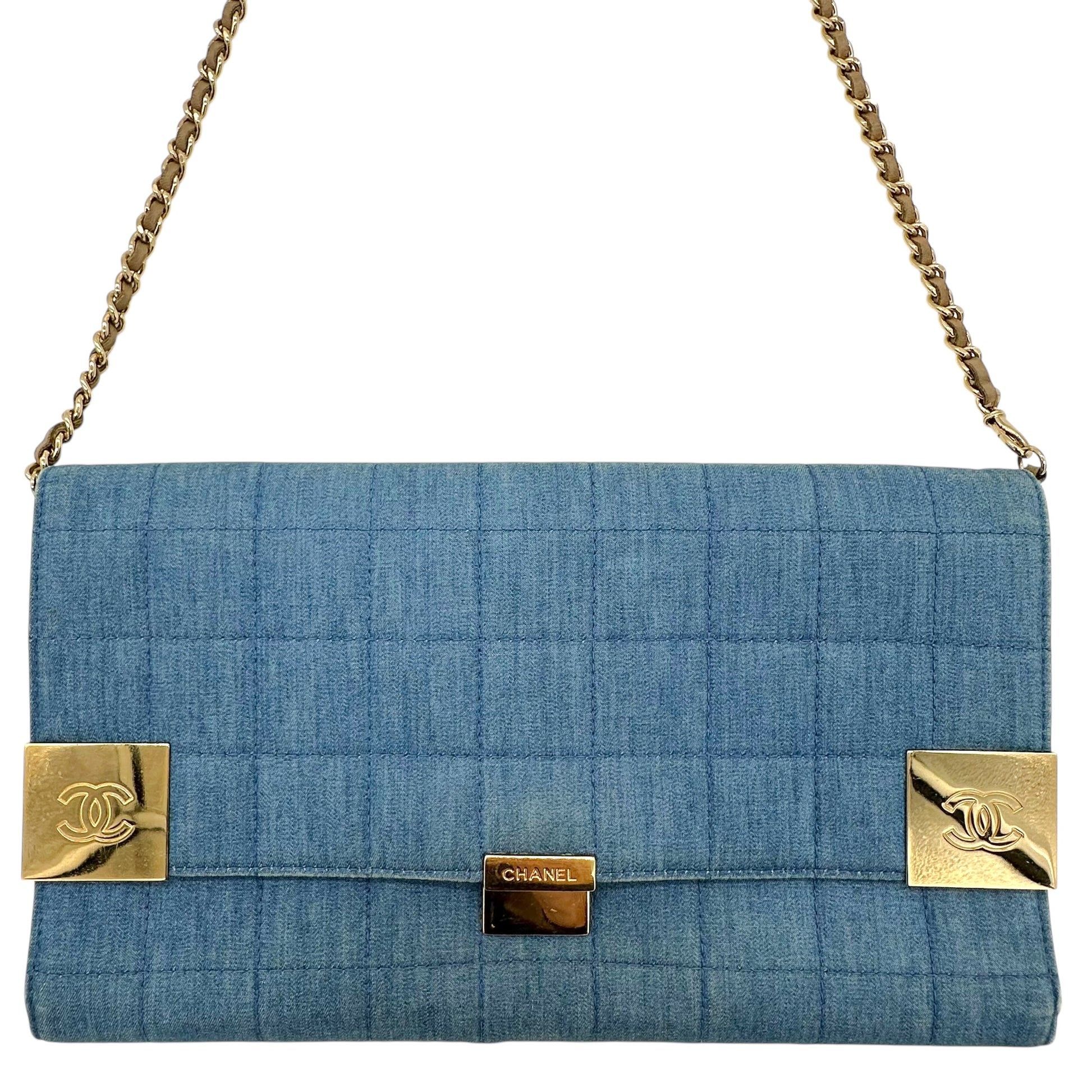 Chanel 2003 Quilted Denim Chocolate Bar Clutch 2-Way Bag
