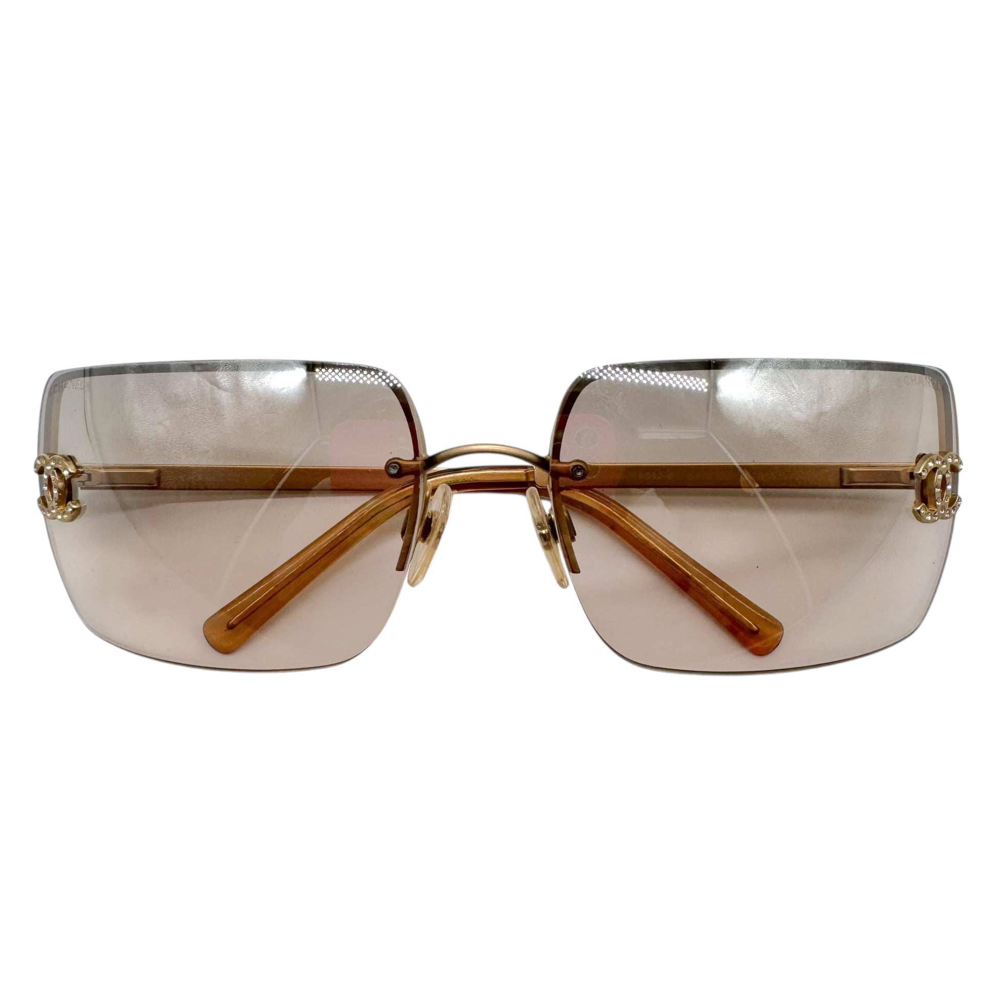 Chanel Beige/ Gold Crystal Logo Rimless 4092-B Sunglasses