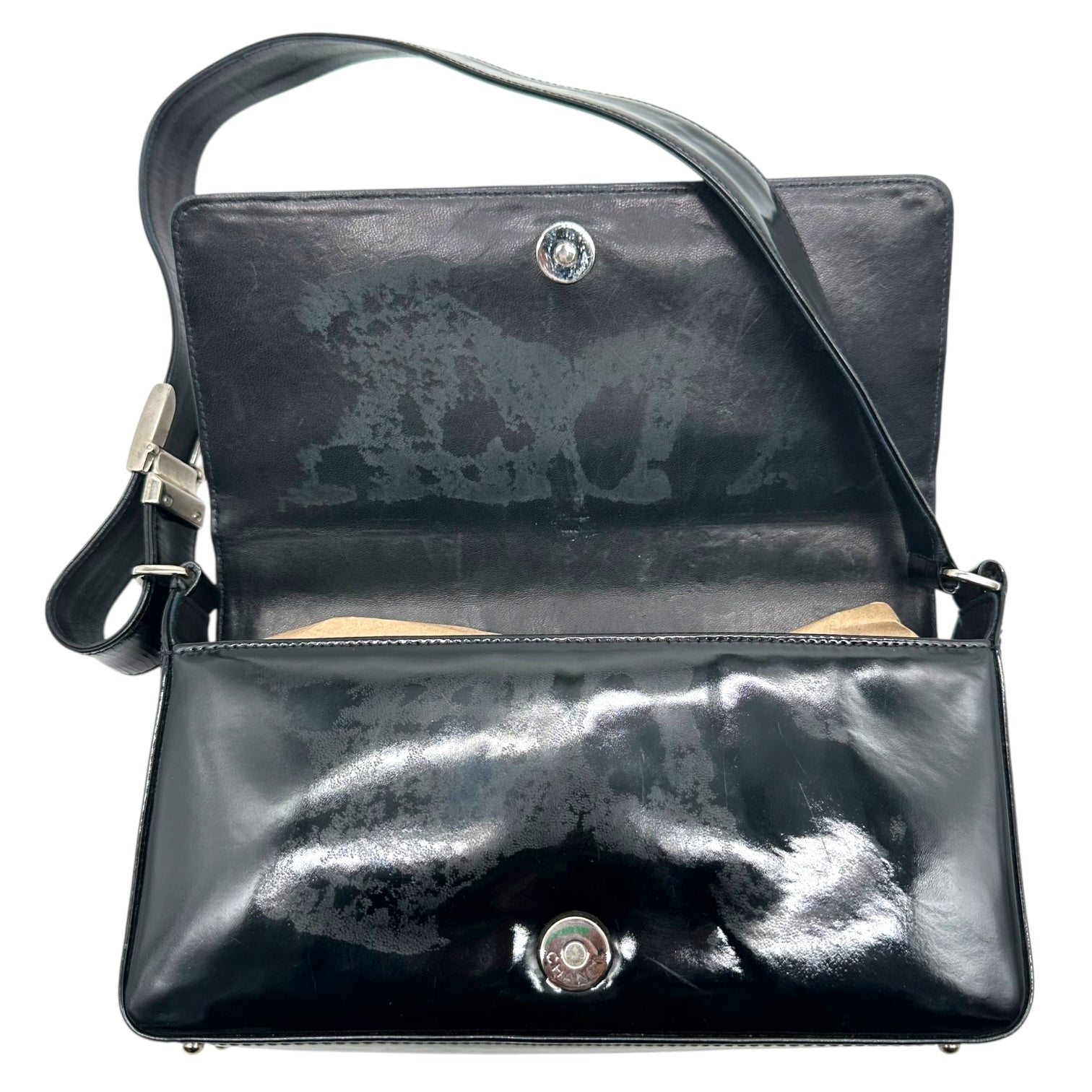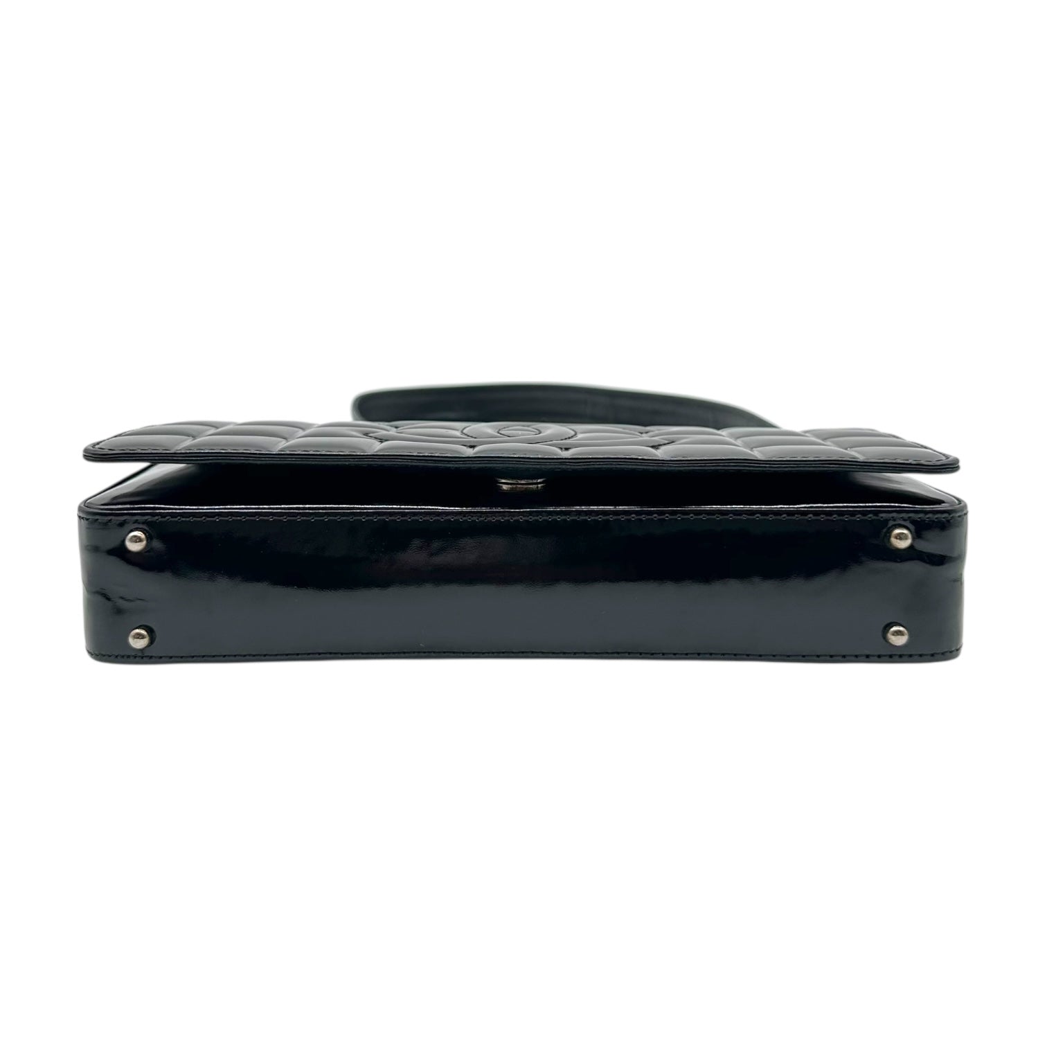 Chanel Black Patent Leather Chocolate Bar Pochette Bag