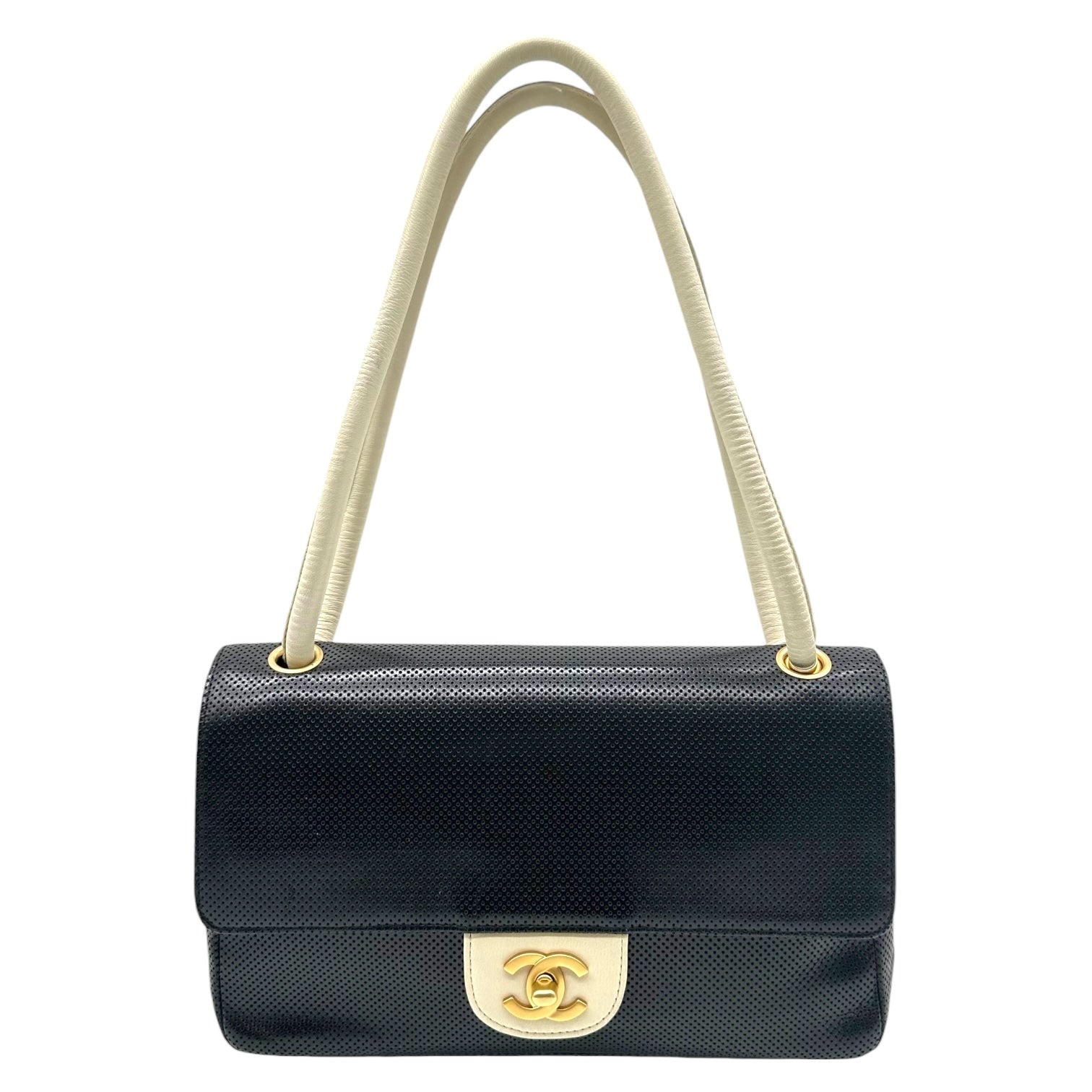 Chanel Black & White Perforated Lambskin Flap Bag 2000-02