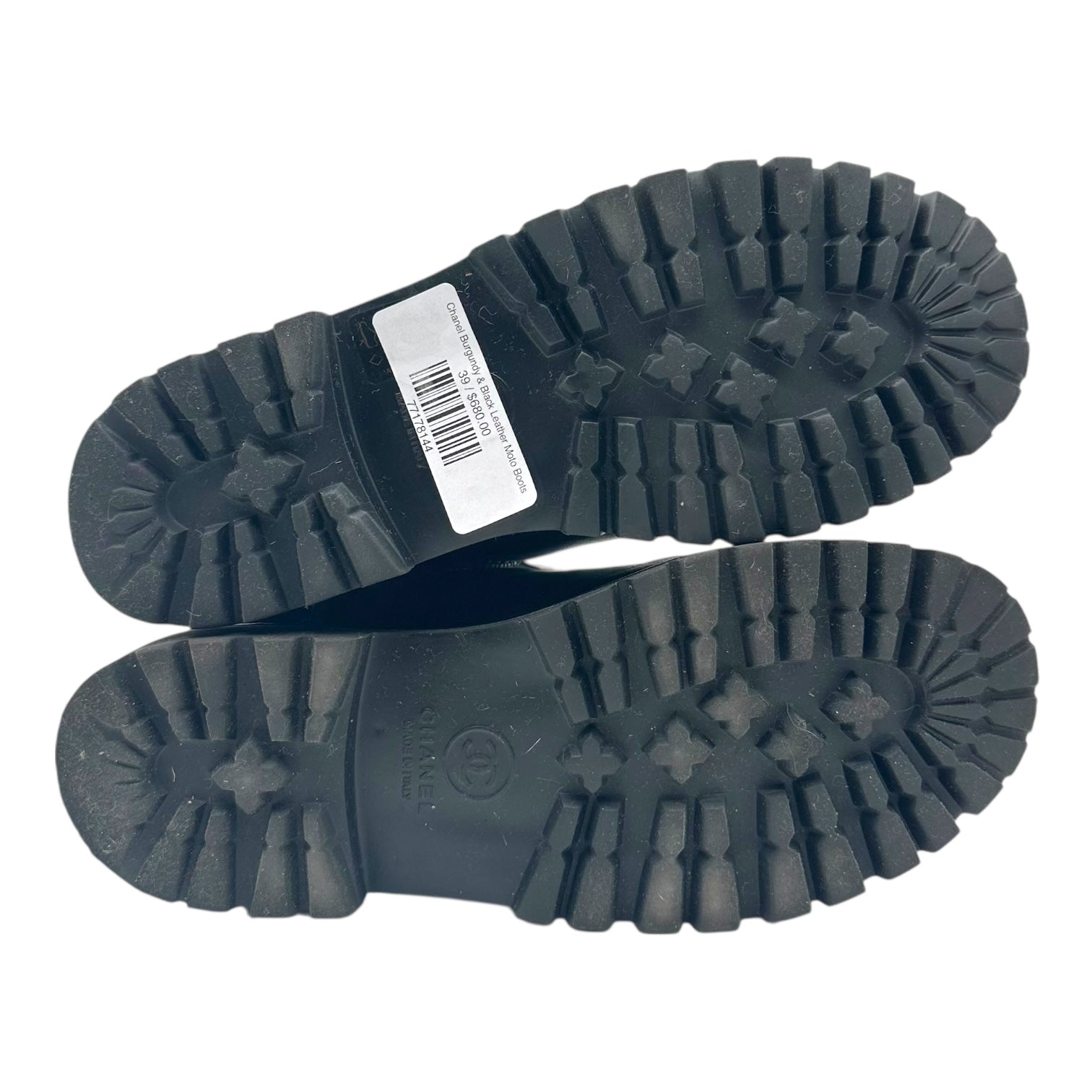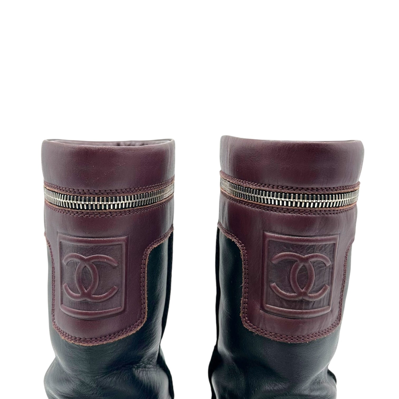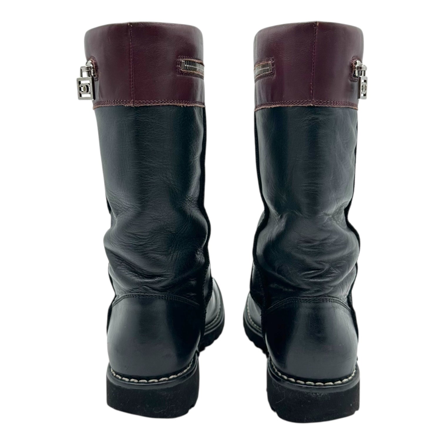 Chanel Burgundy & Black Leather Moto Boots