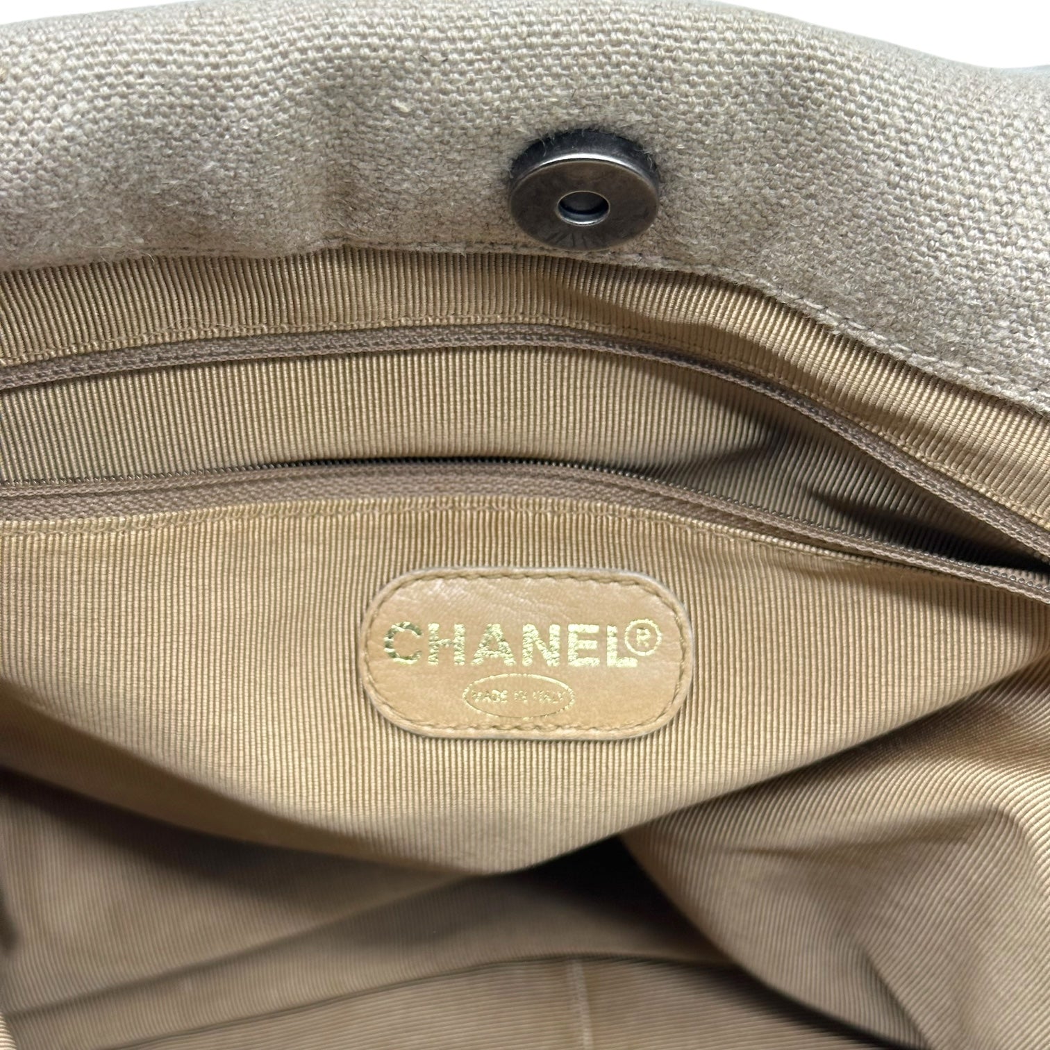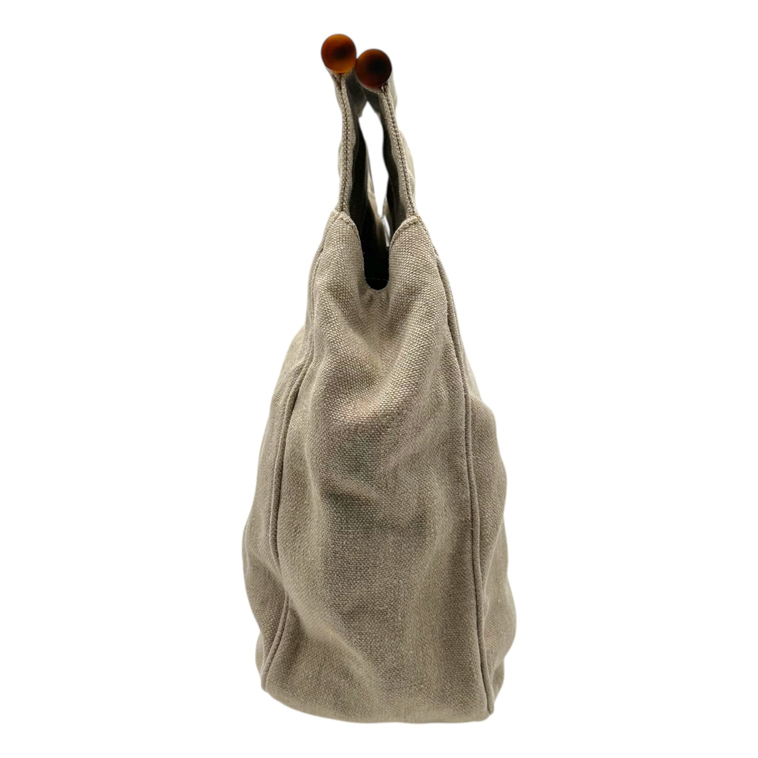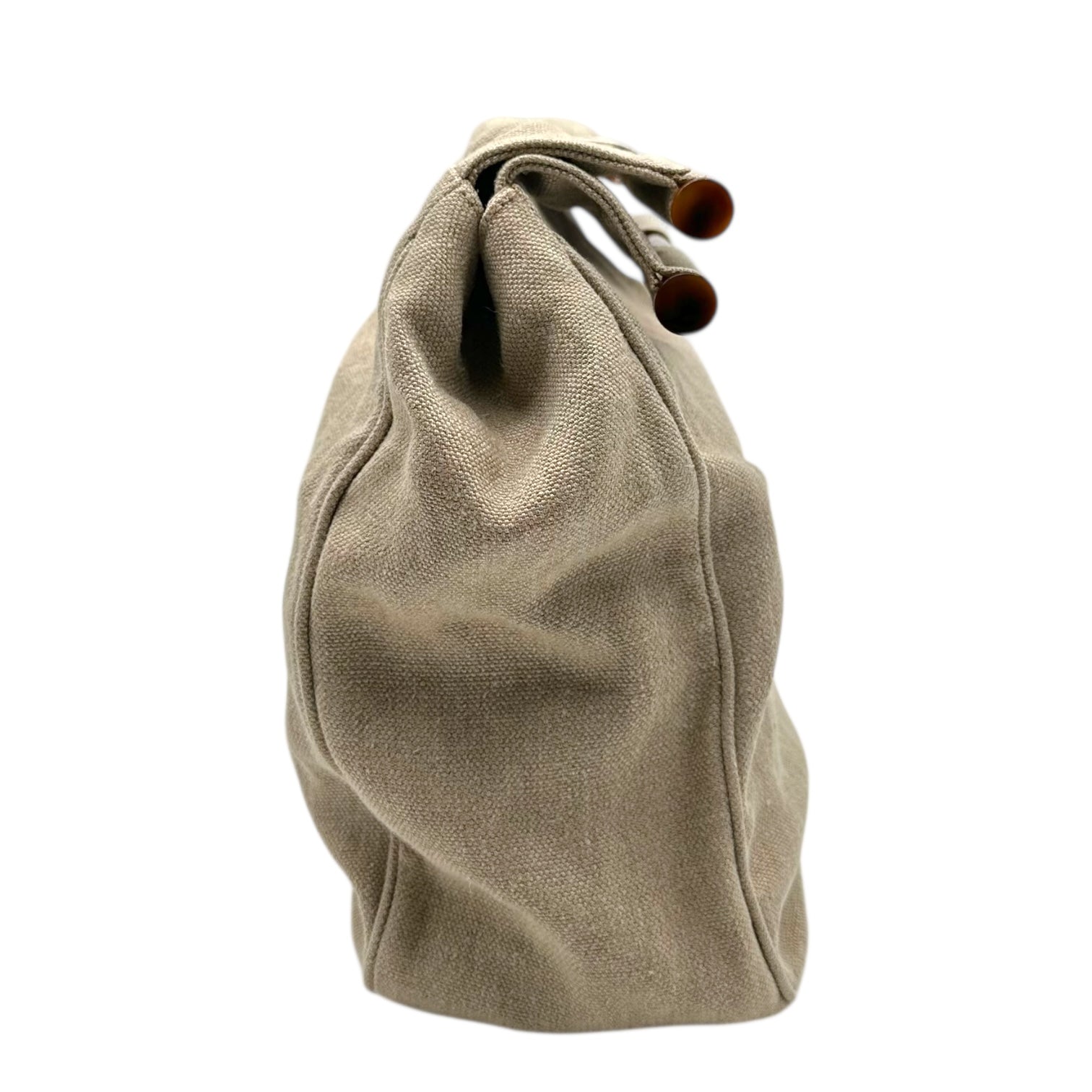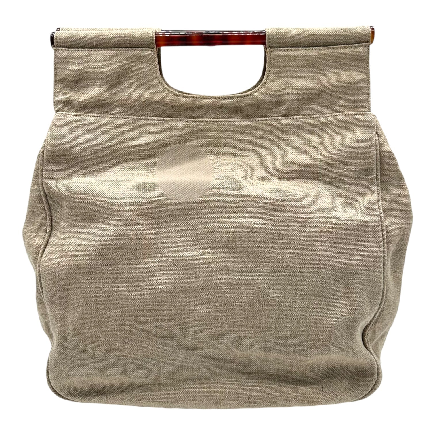 Chanel Large Beige Fabric & Plastic Handle Logo Clutch Bag 1996-97