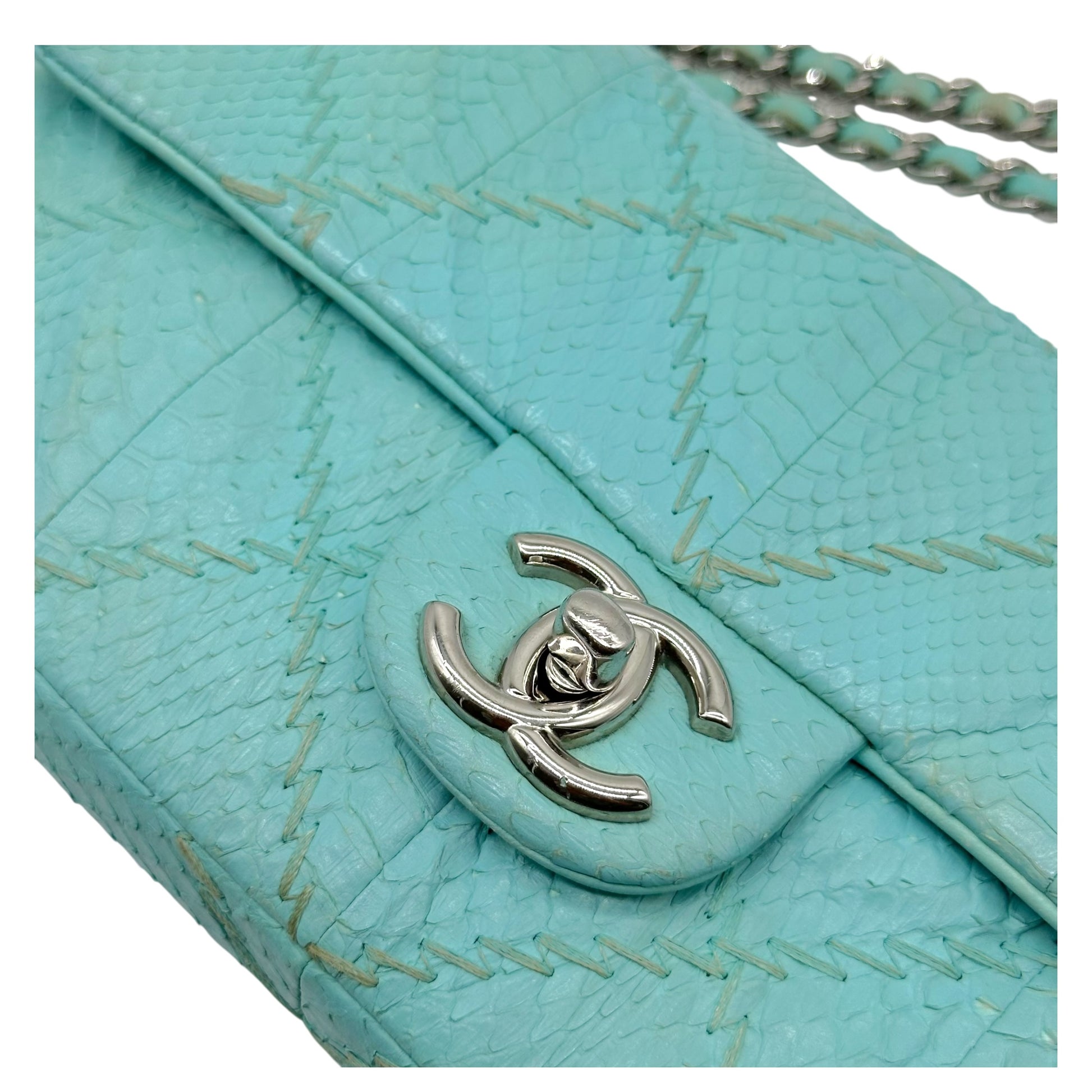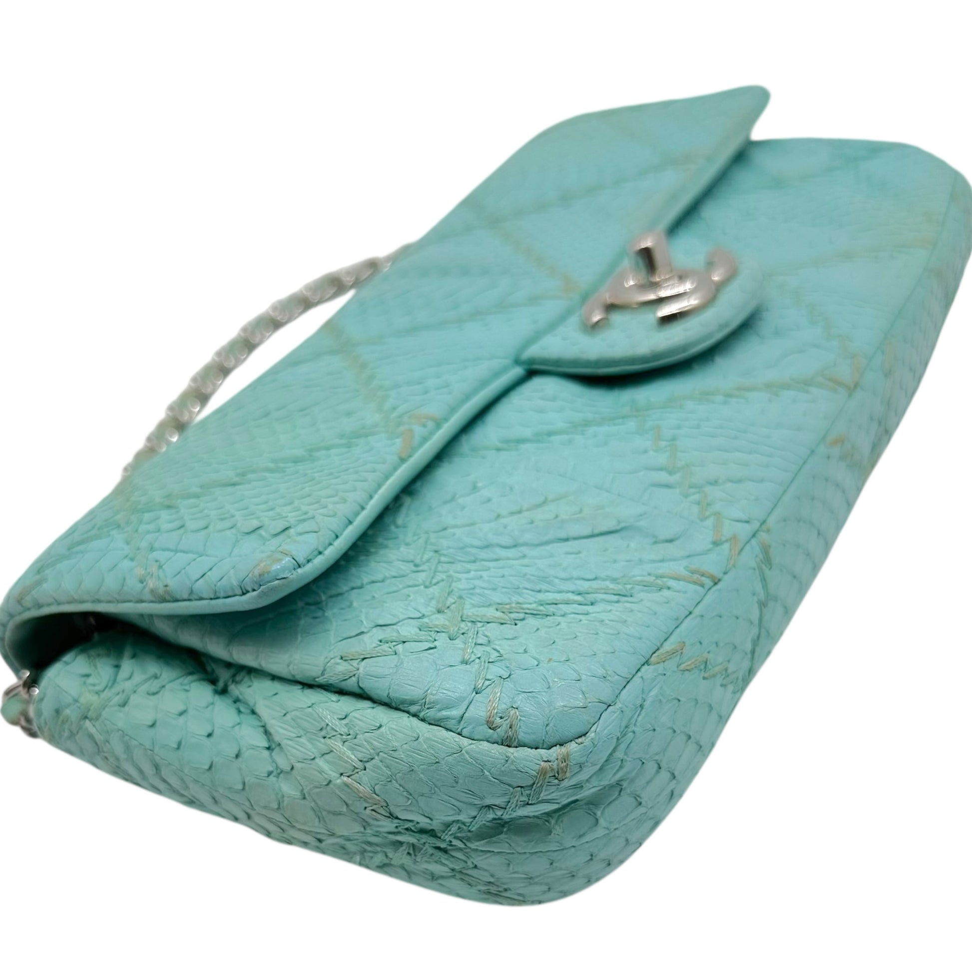 Chanel Light Blue Python Wild Stitch Small East West Flap Bag