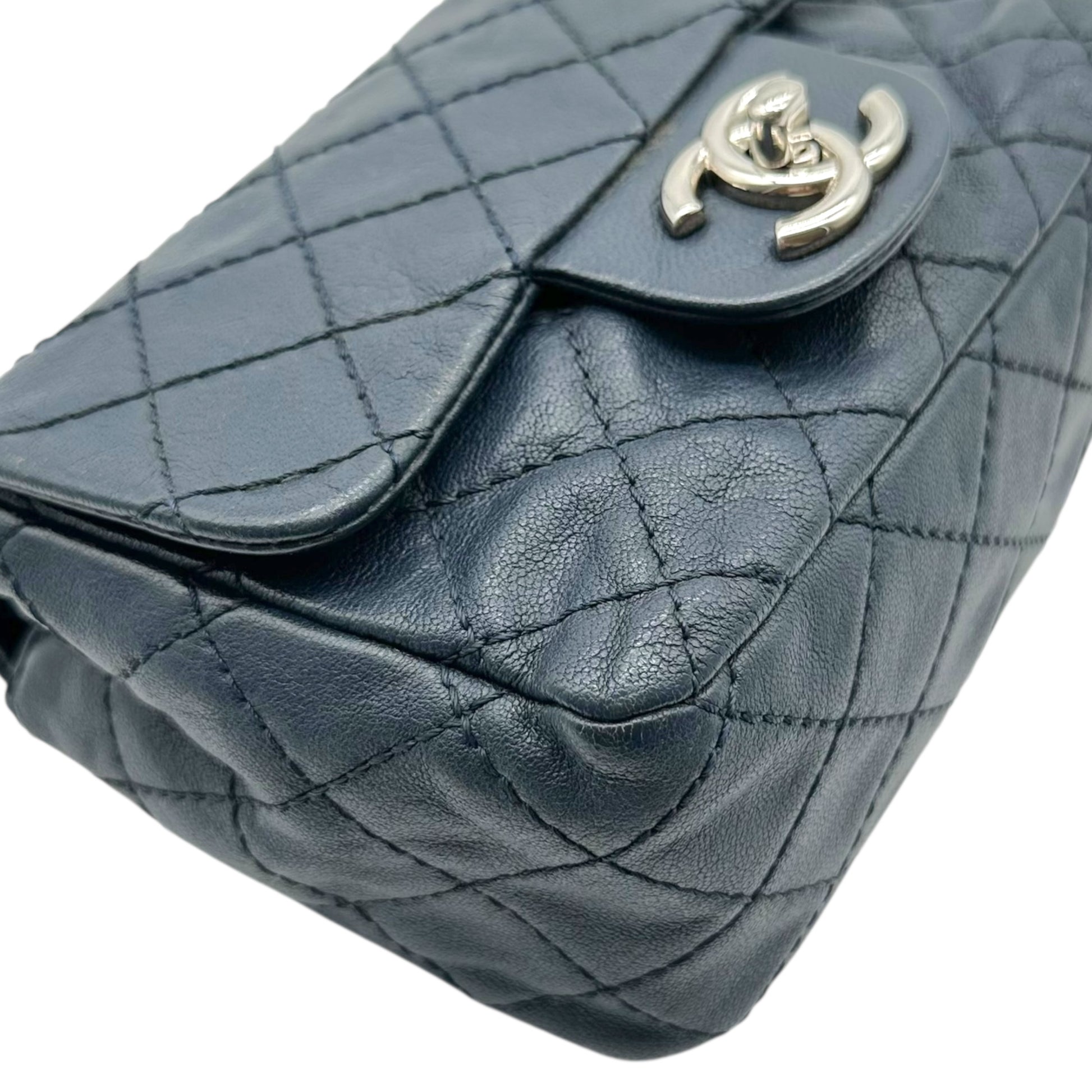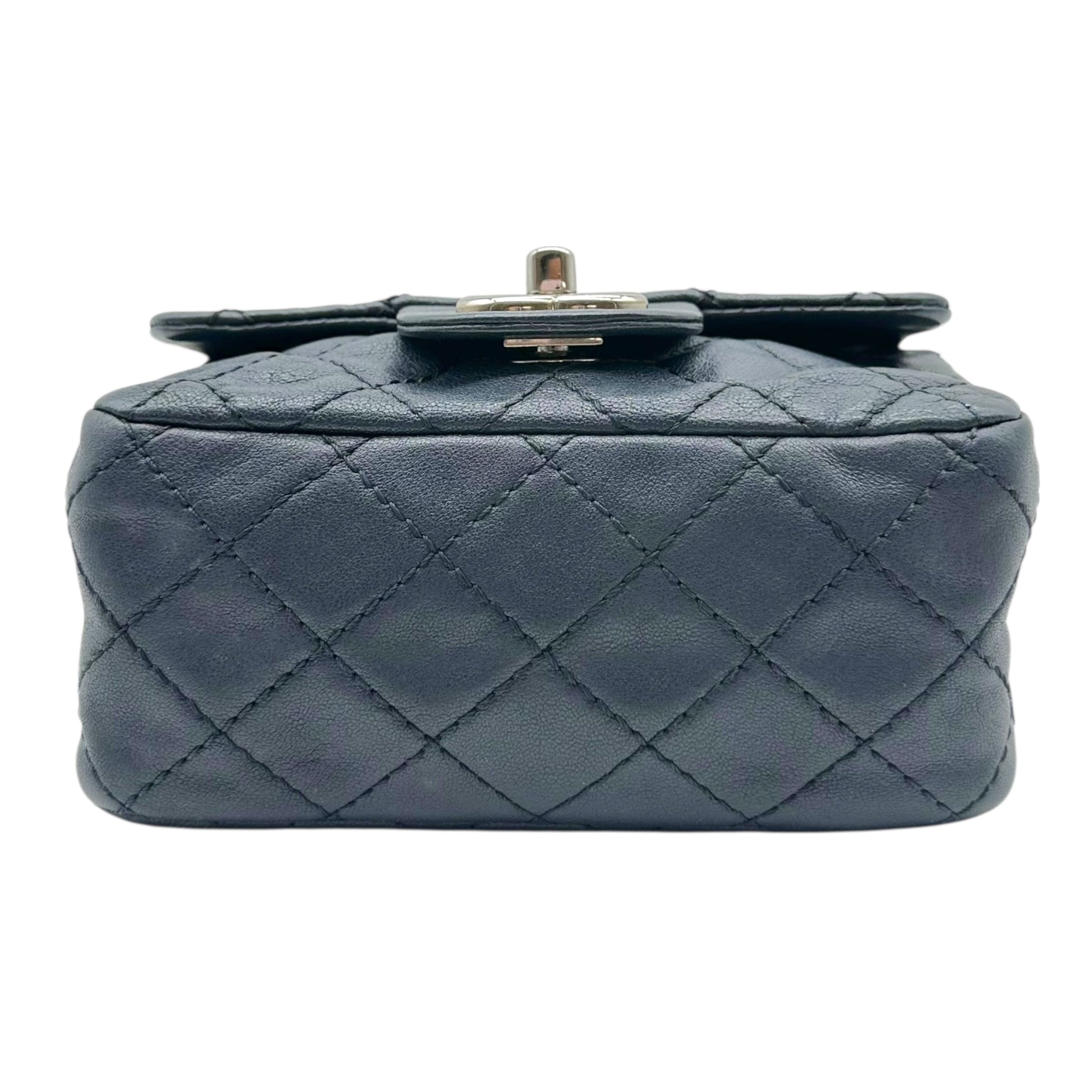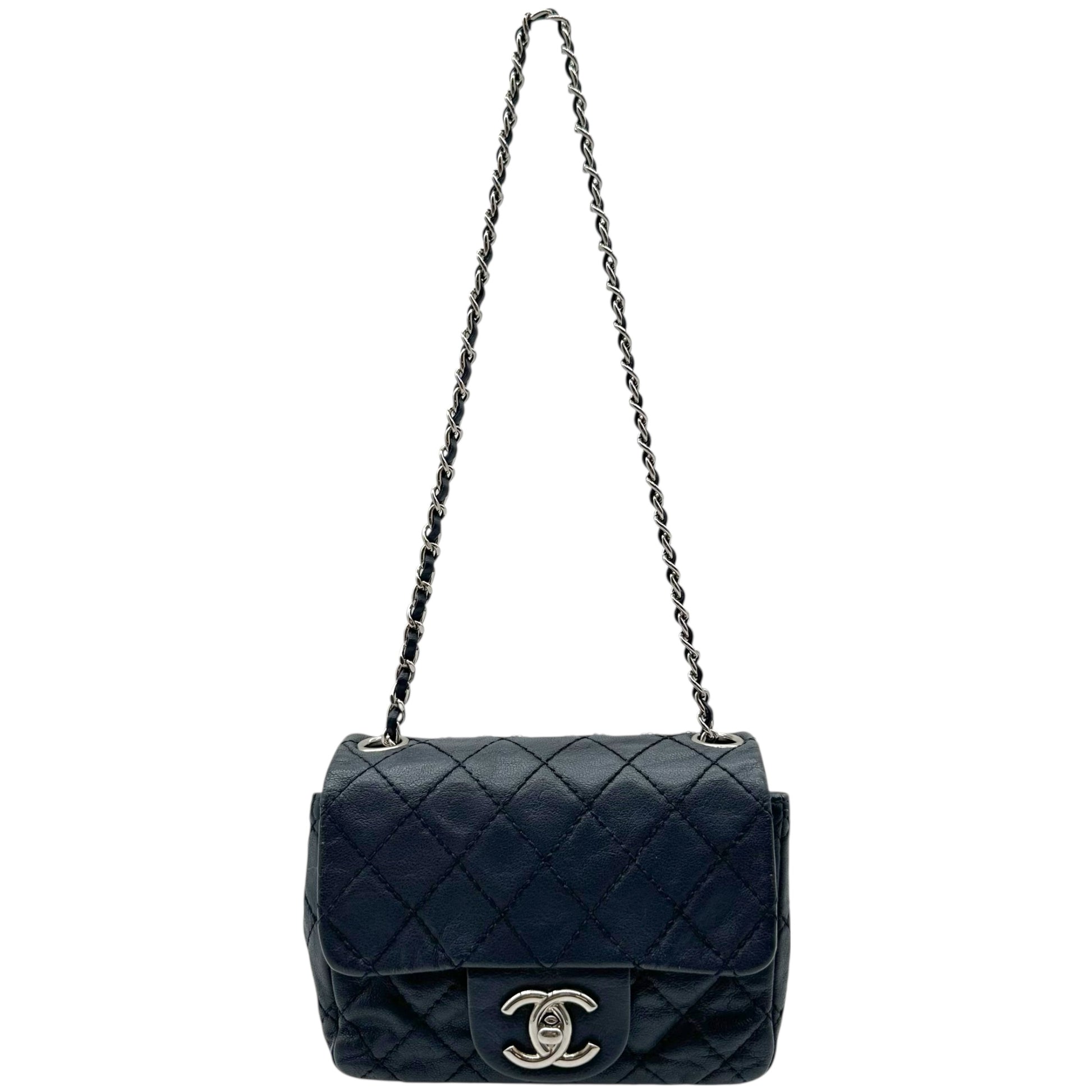 Chanel Navy Blue & Silver Mini Square Flap Crossbody Bag