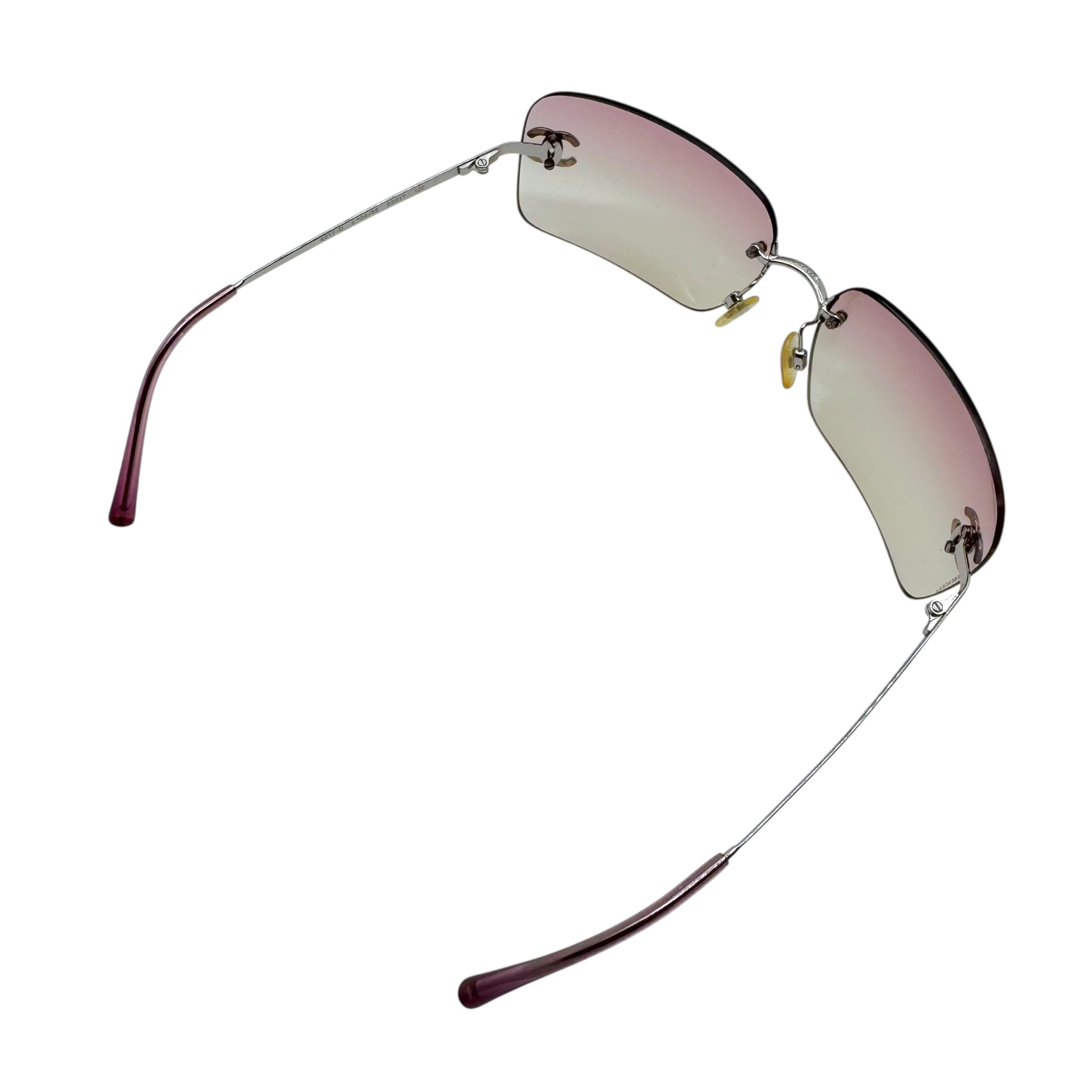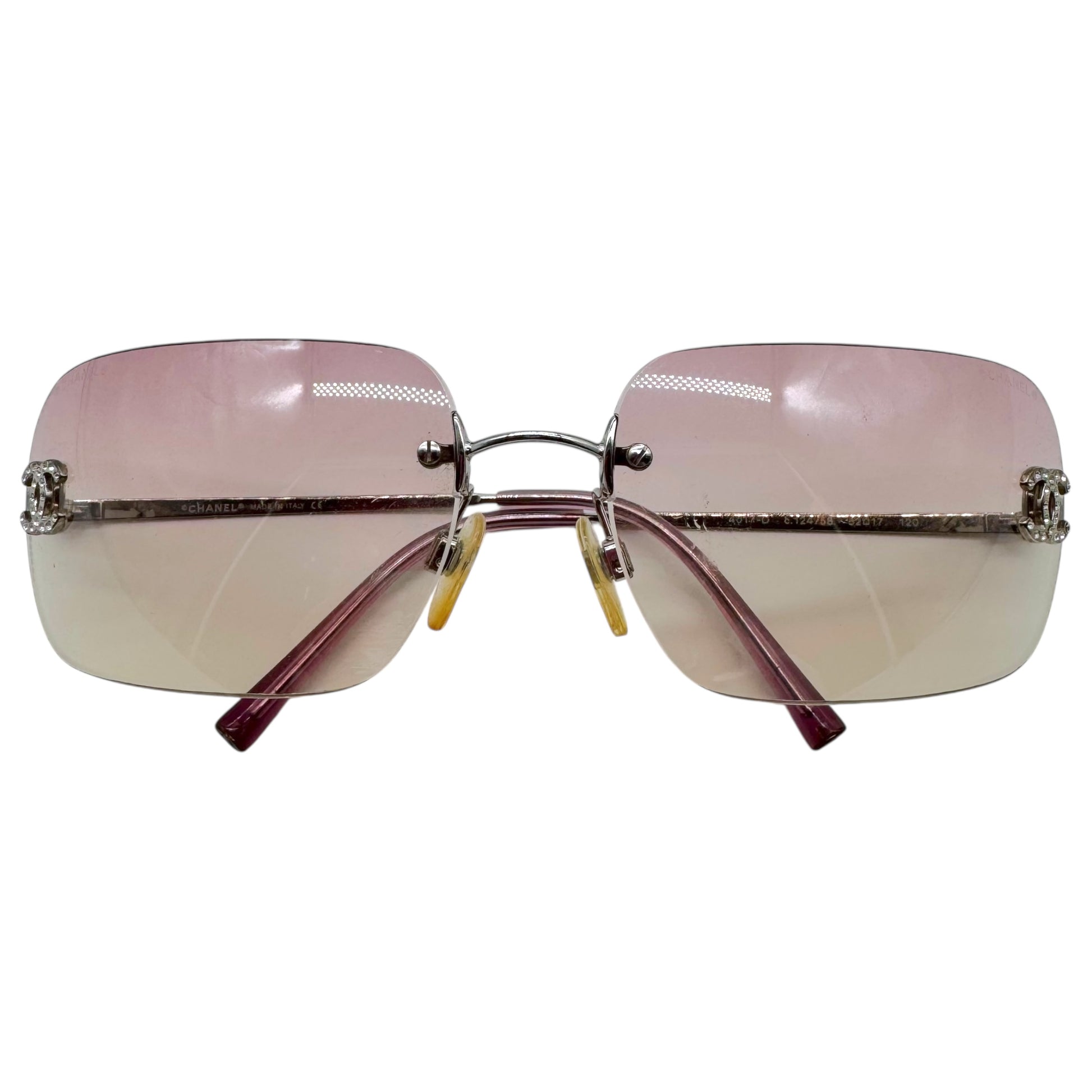 Chanel Pink/ Silver Crystal Logo Rimless 4017-B Sunglasses