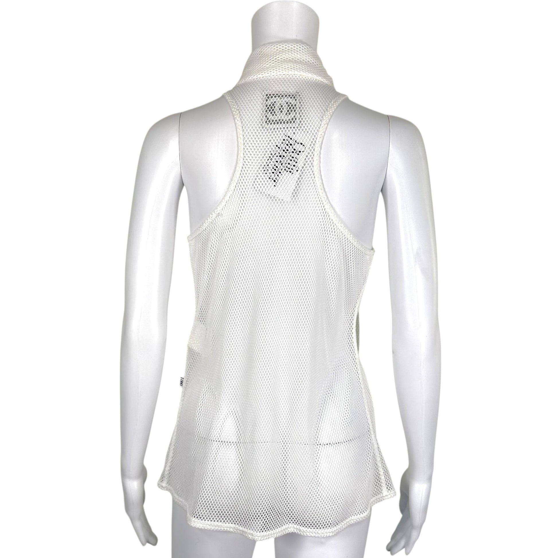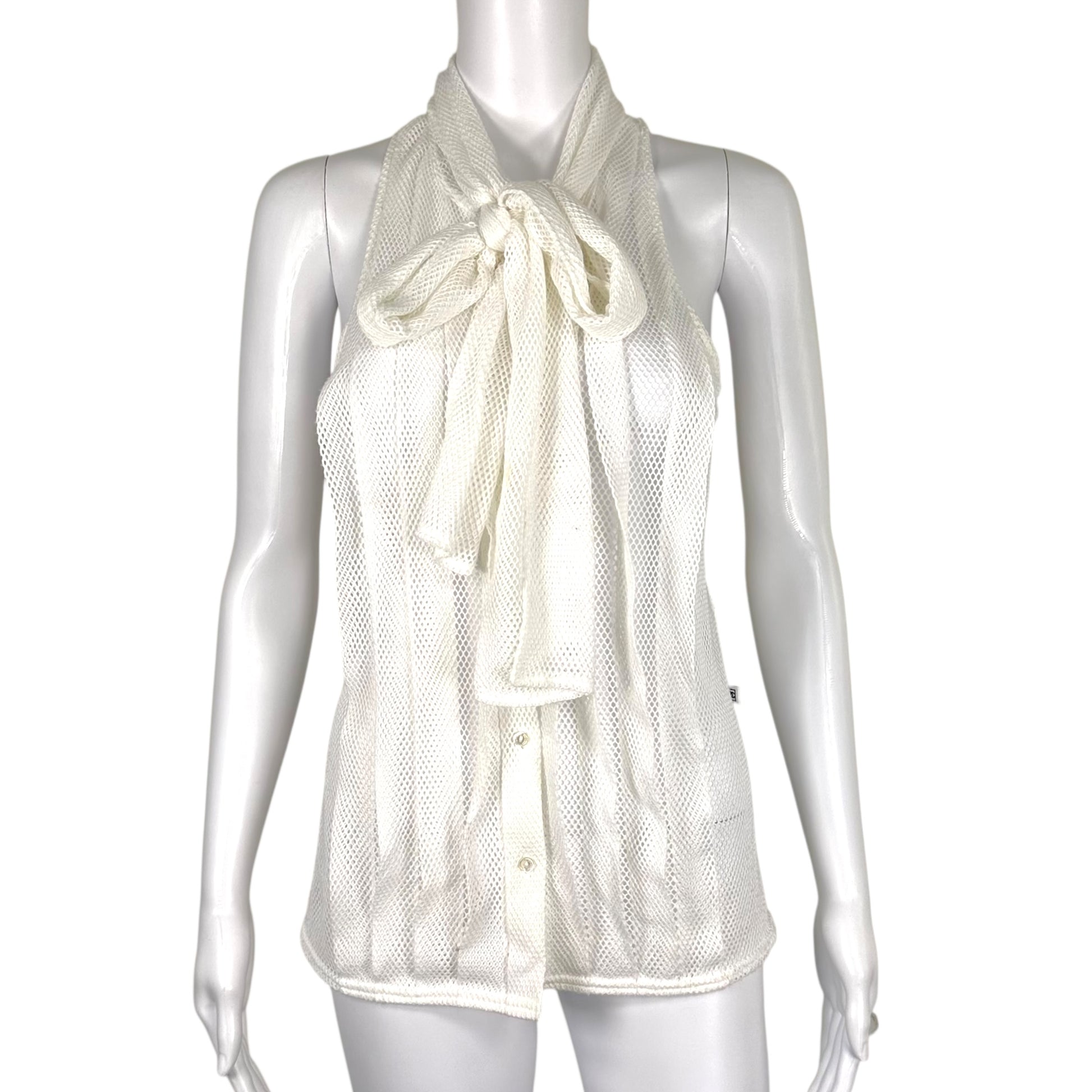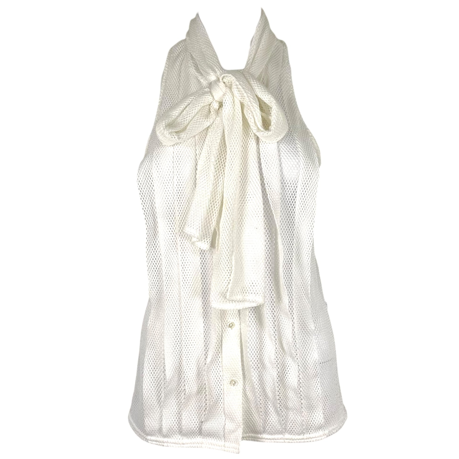 Chanel Sport White Sheer Open Mesh Tie Neck Blouse