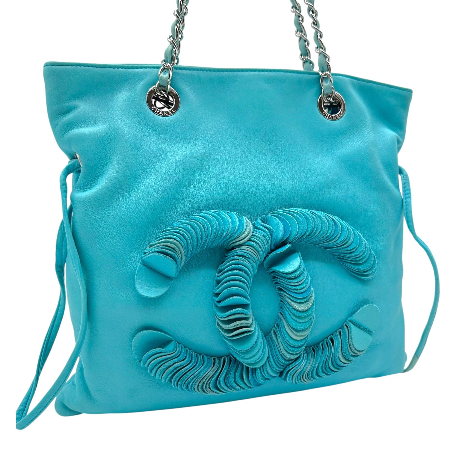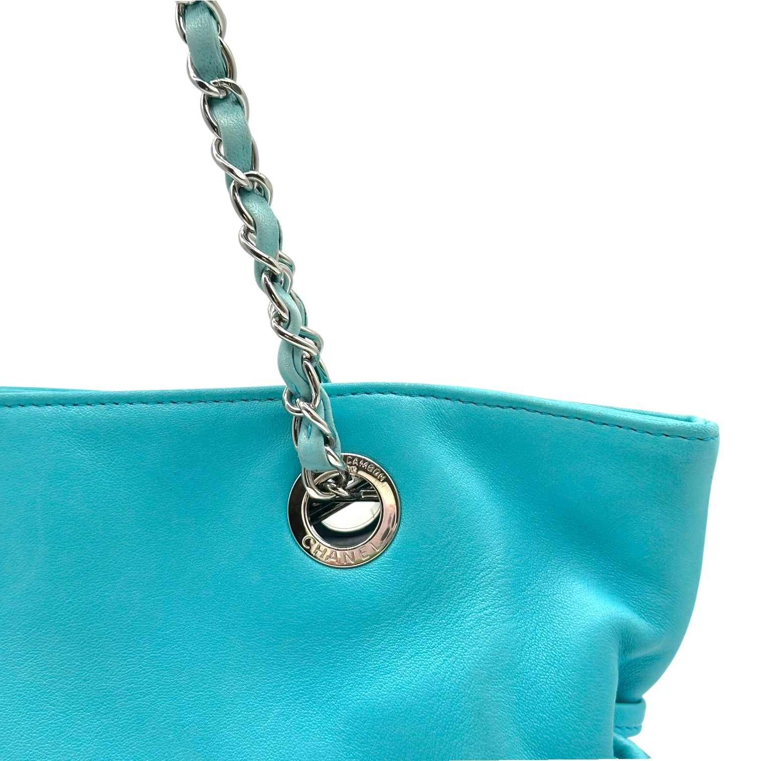 Chanel Teal Lambskin CC Logo Small Tote Bag 2008-09