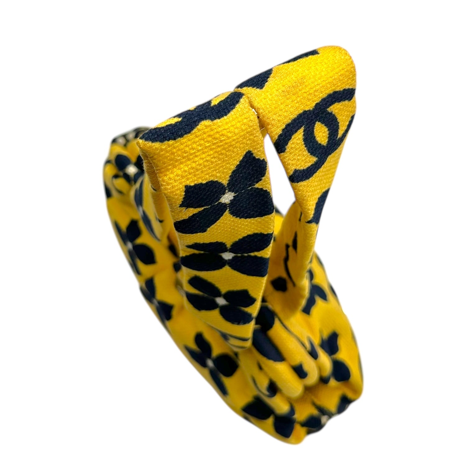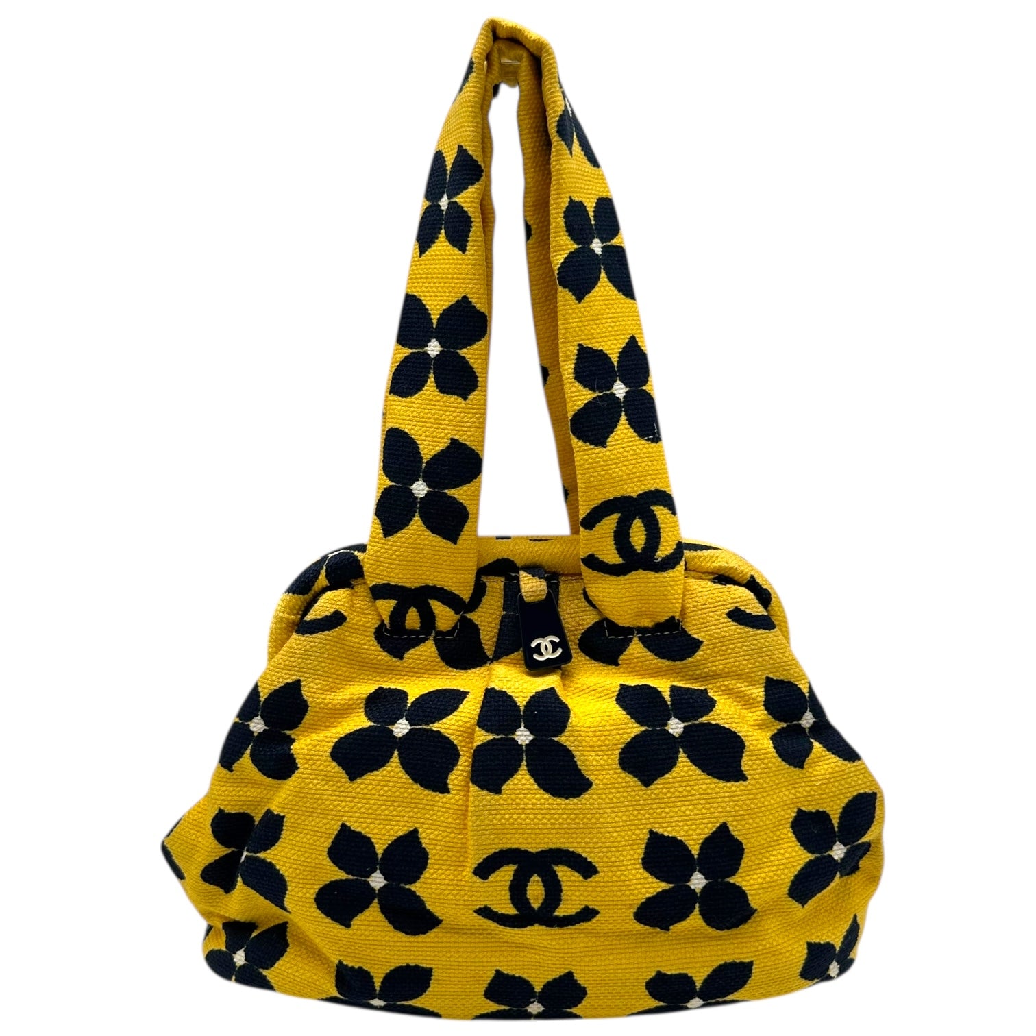 Chanel Yellow & Navy Clover Print Kisslock Bag