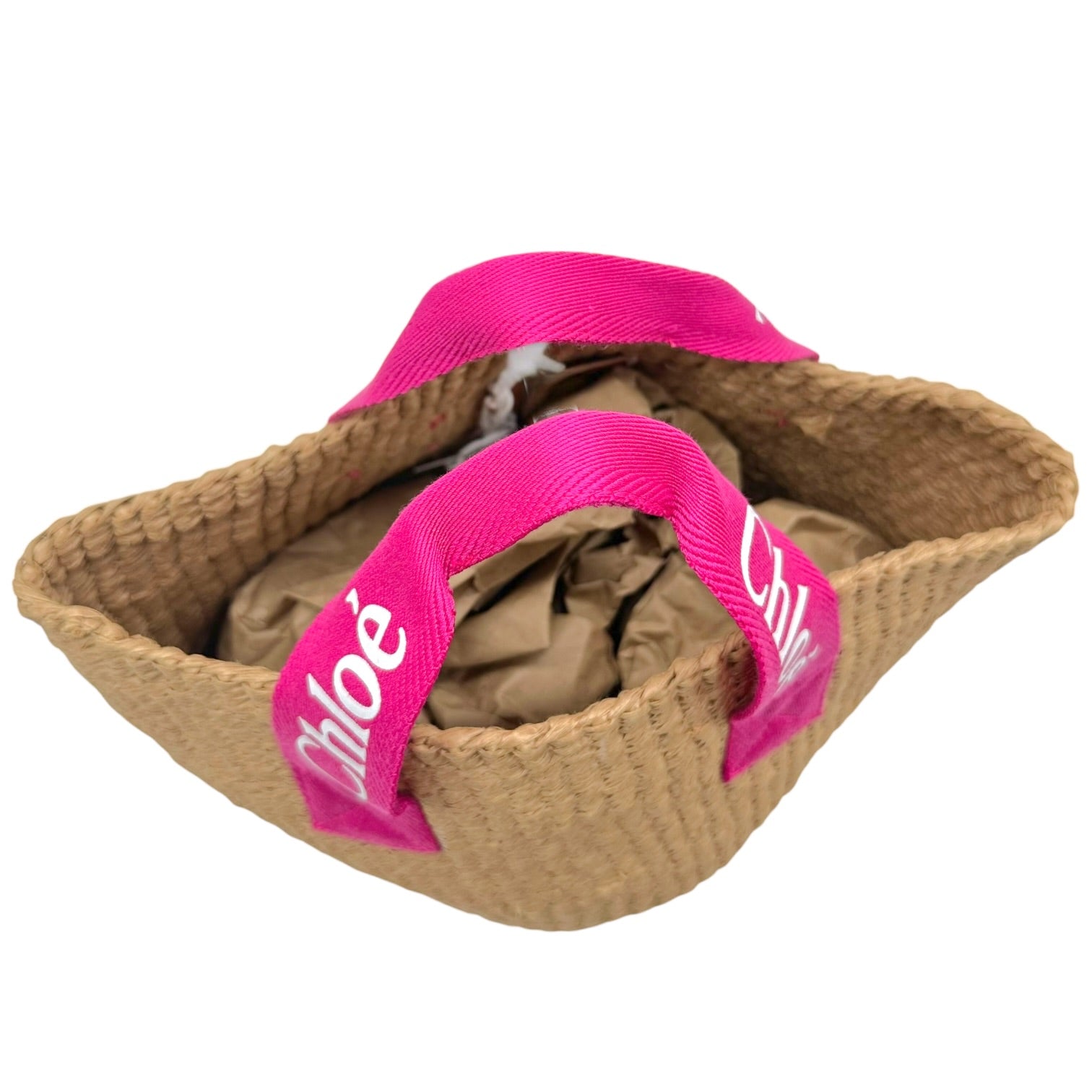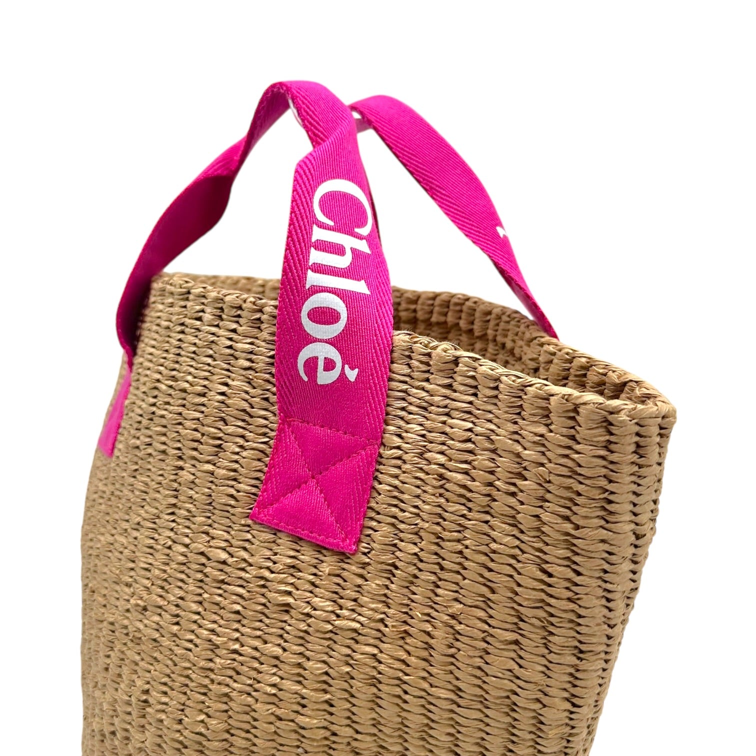 Chloé Pink Logo Handle Woven Wicker Basket Bag NEW