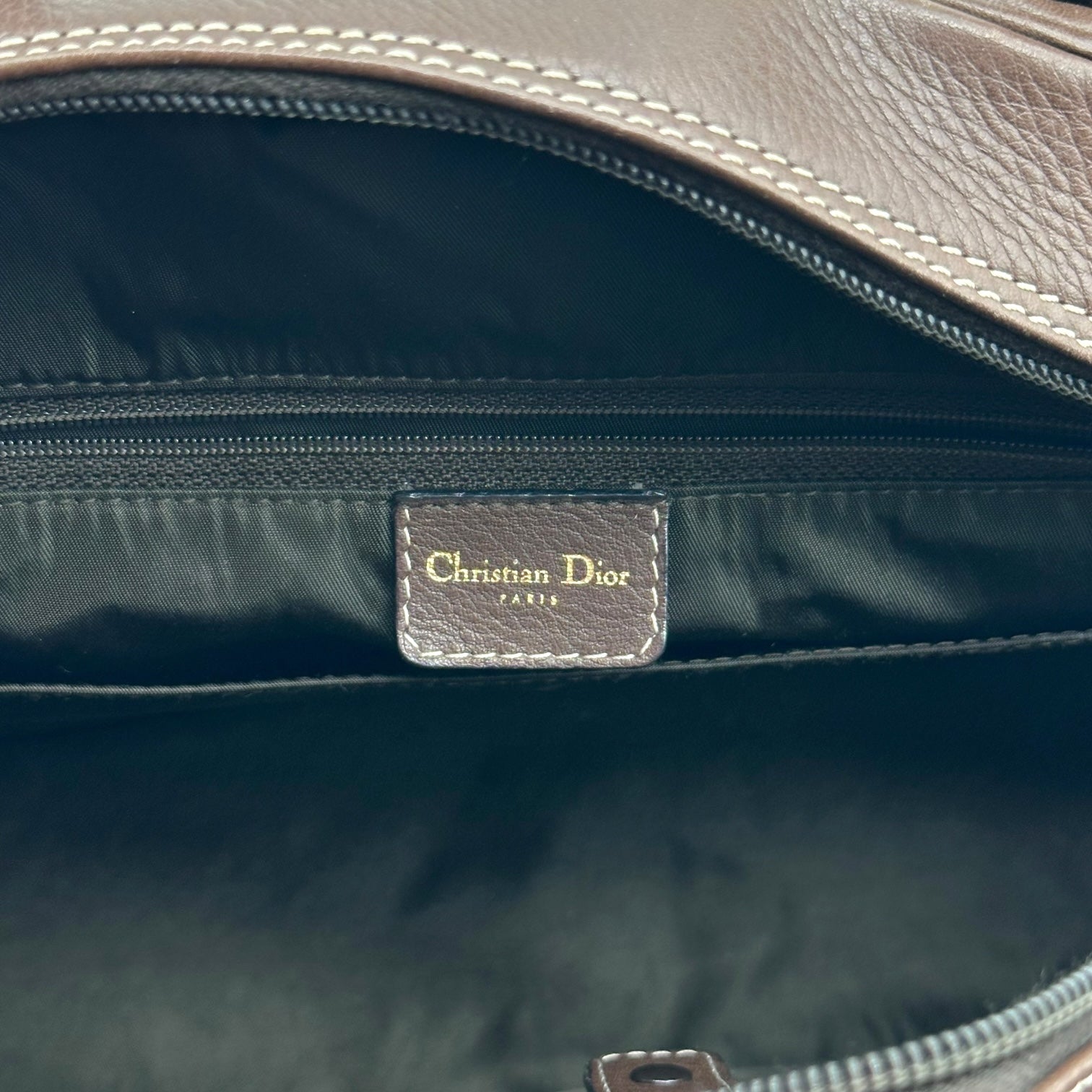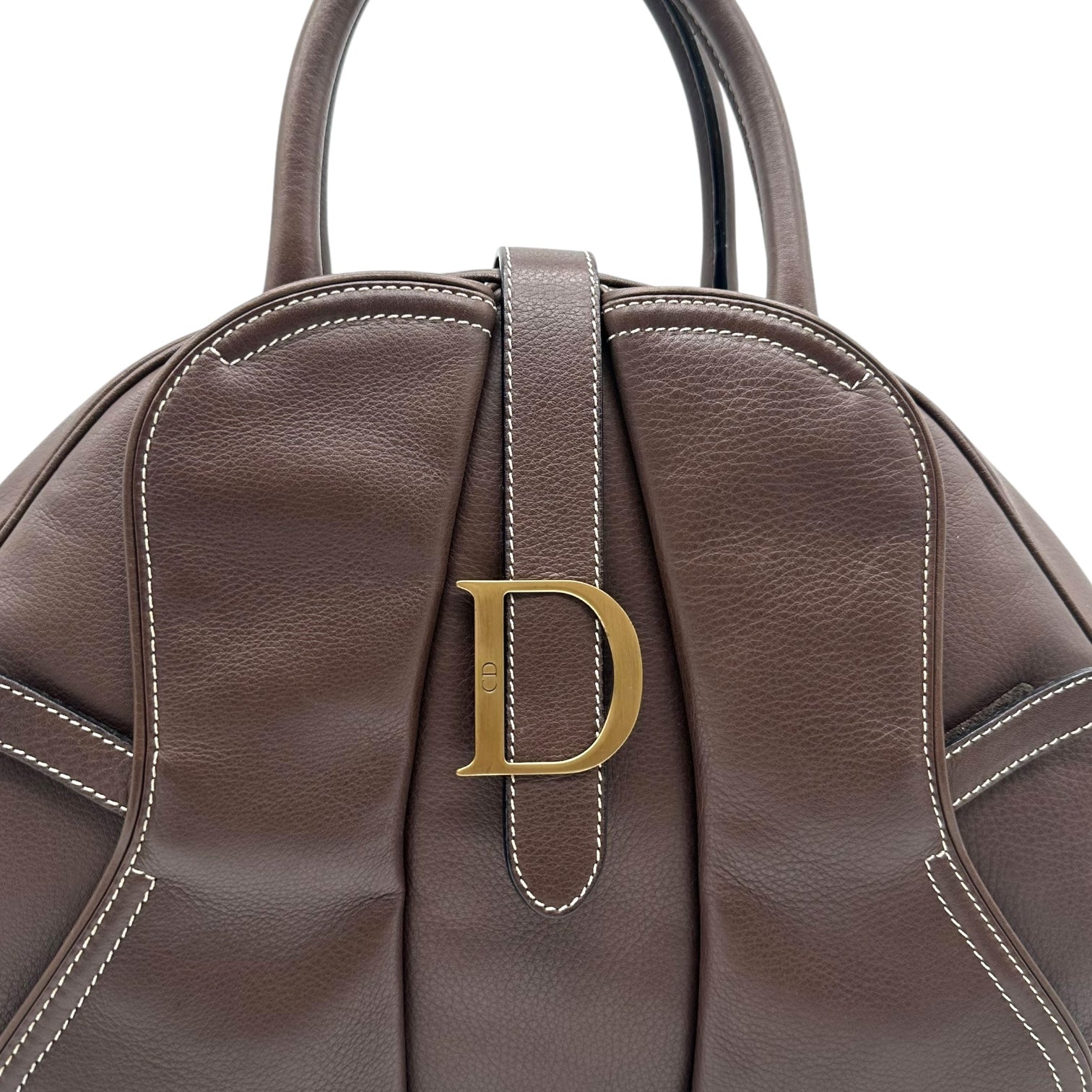 Christian Dior Brown Leather Large Double Saddle Bowler Bag