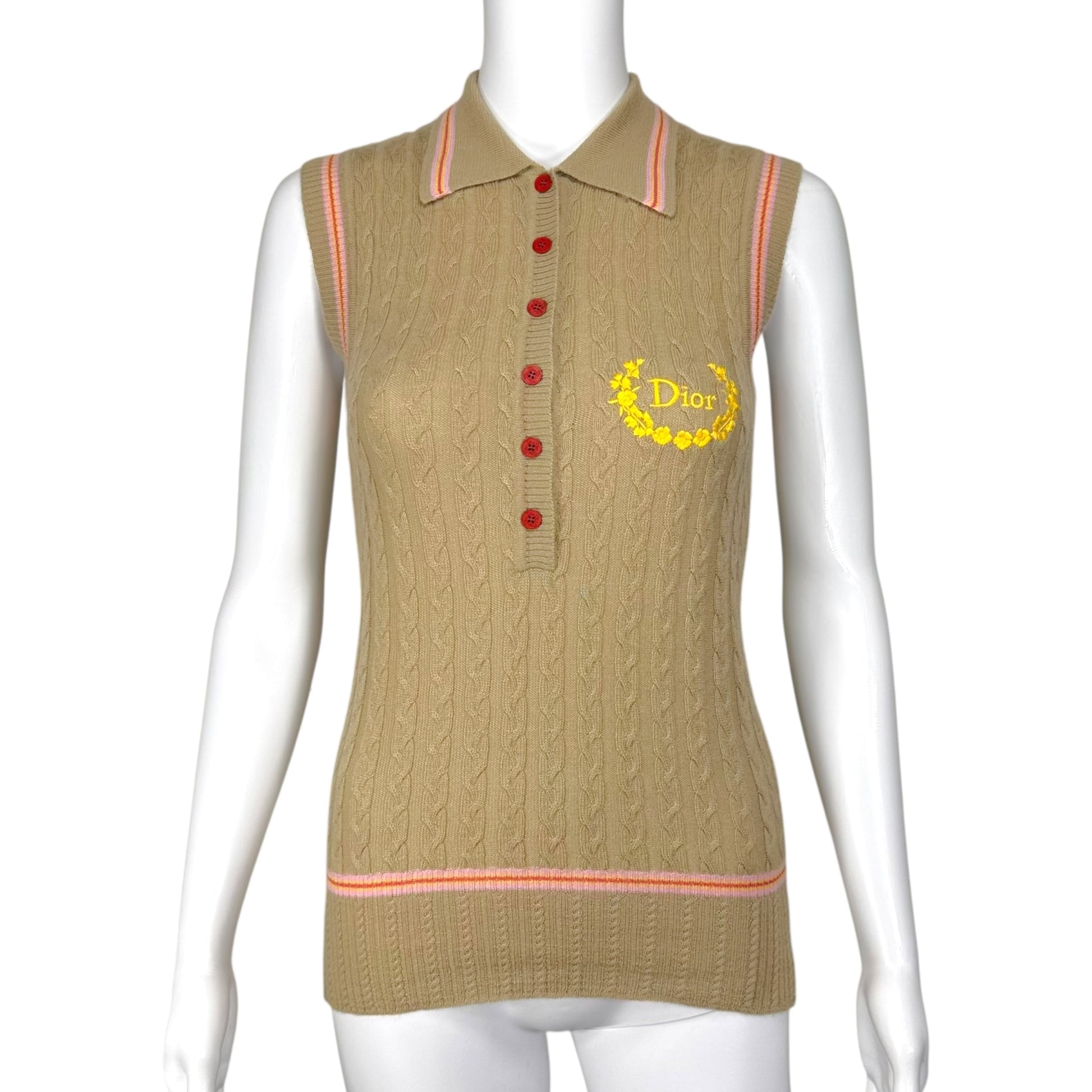 Christian Dior F/W 2004 Beige & Pink Cashmere Knit Polo Tank NEW