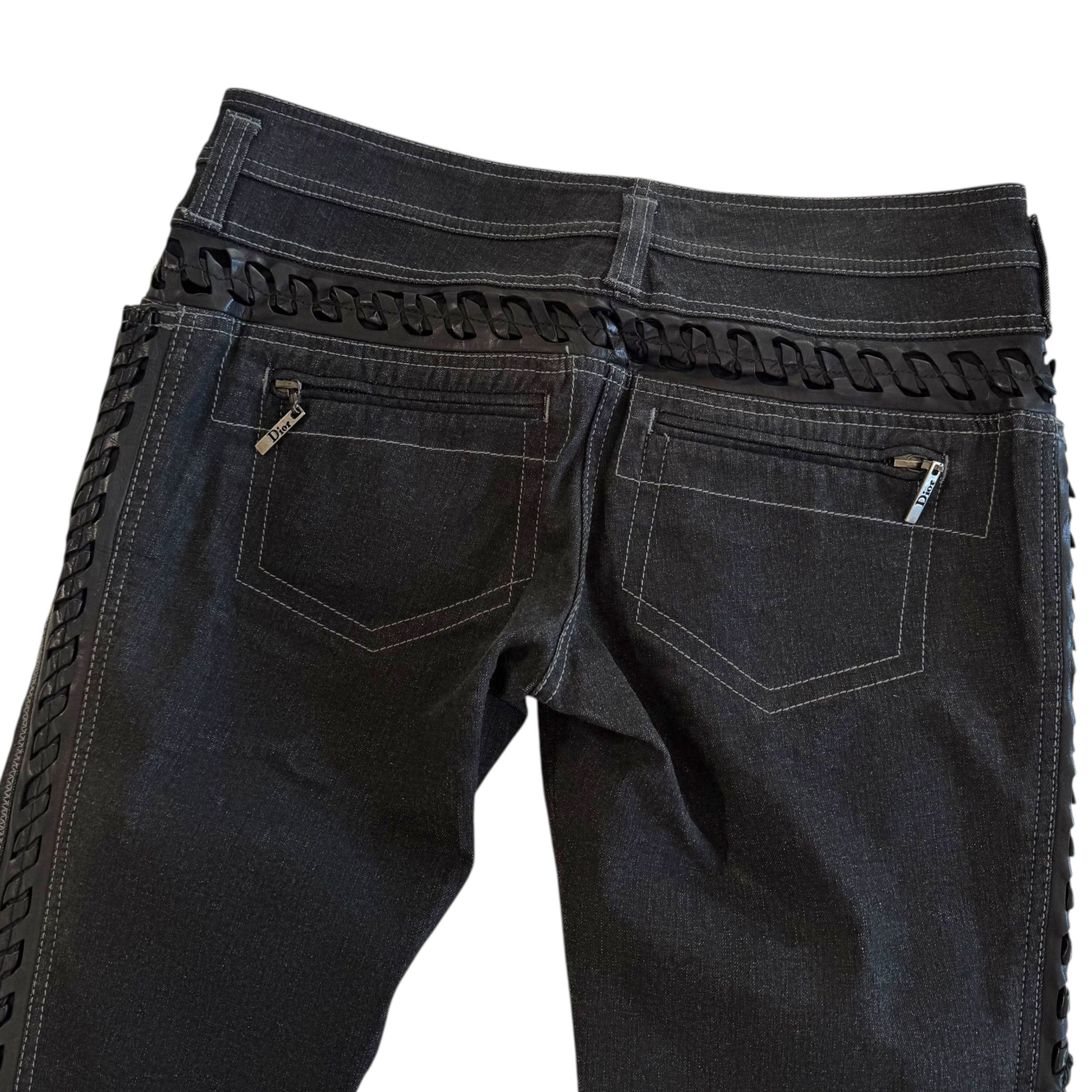 Christian Dior F/W 2006 Leather Stitch Trim Low Rise Dark Wash Jeans