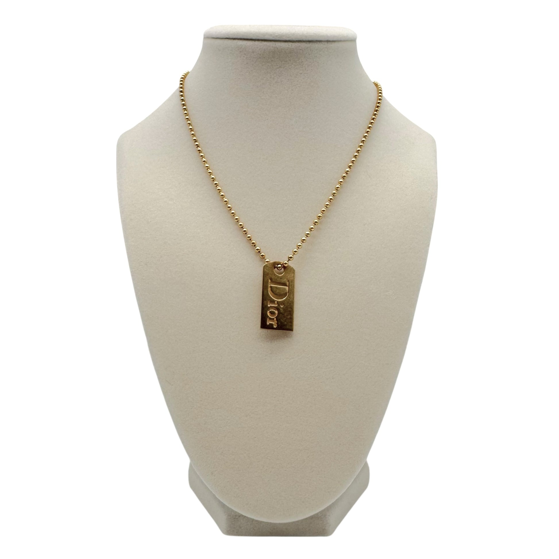 Christian Dior Gold Tag Logo Necklace