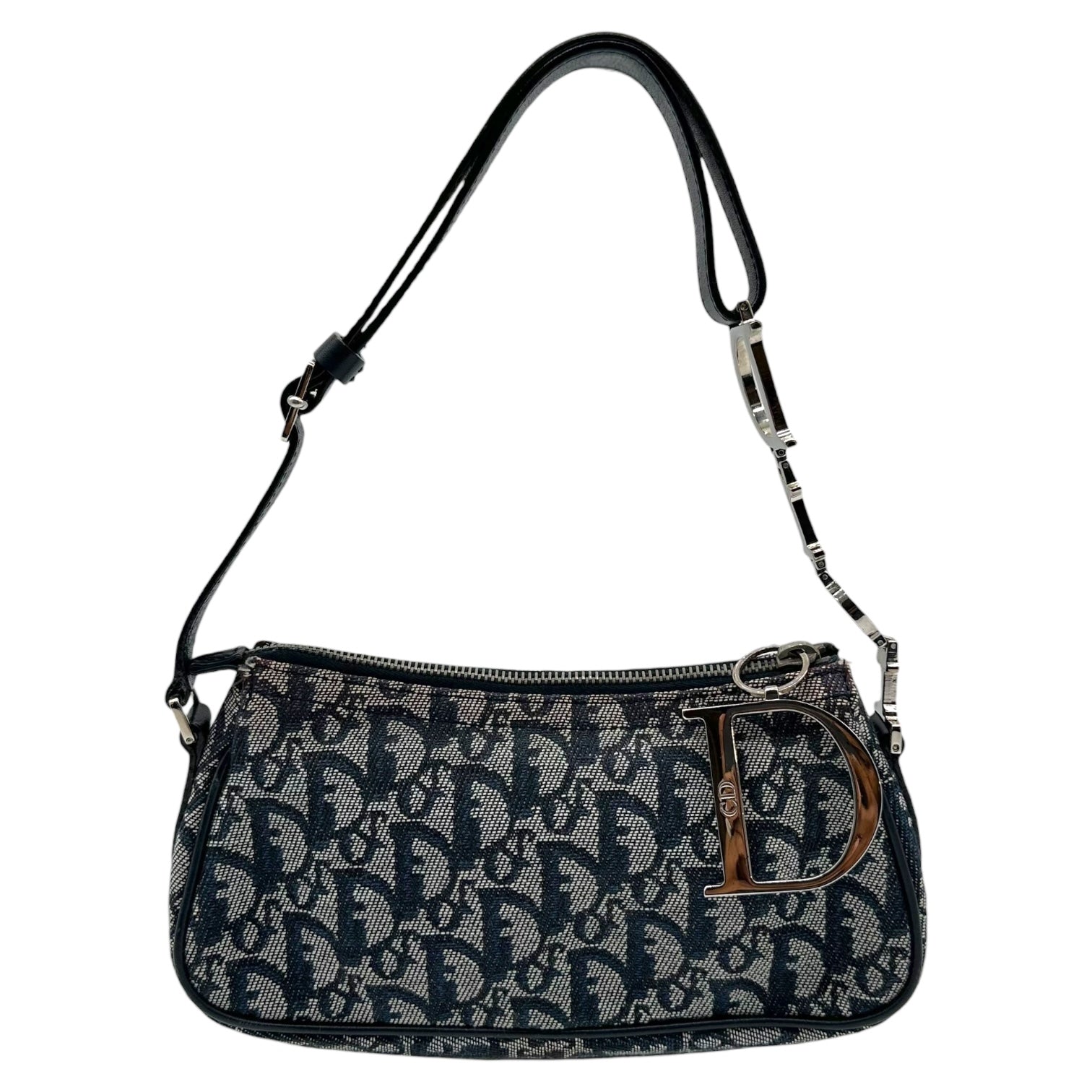 Christian Dior Navy Blue Trotter Monogram Logo Hardware Pochette Bag