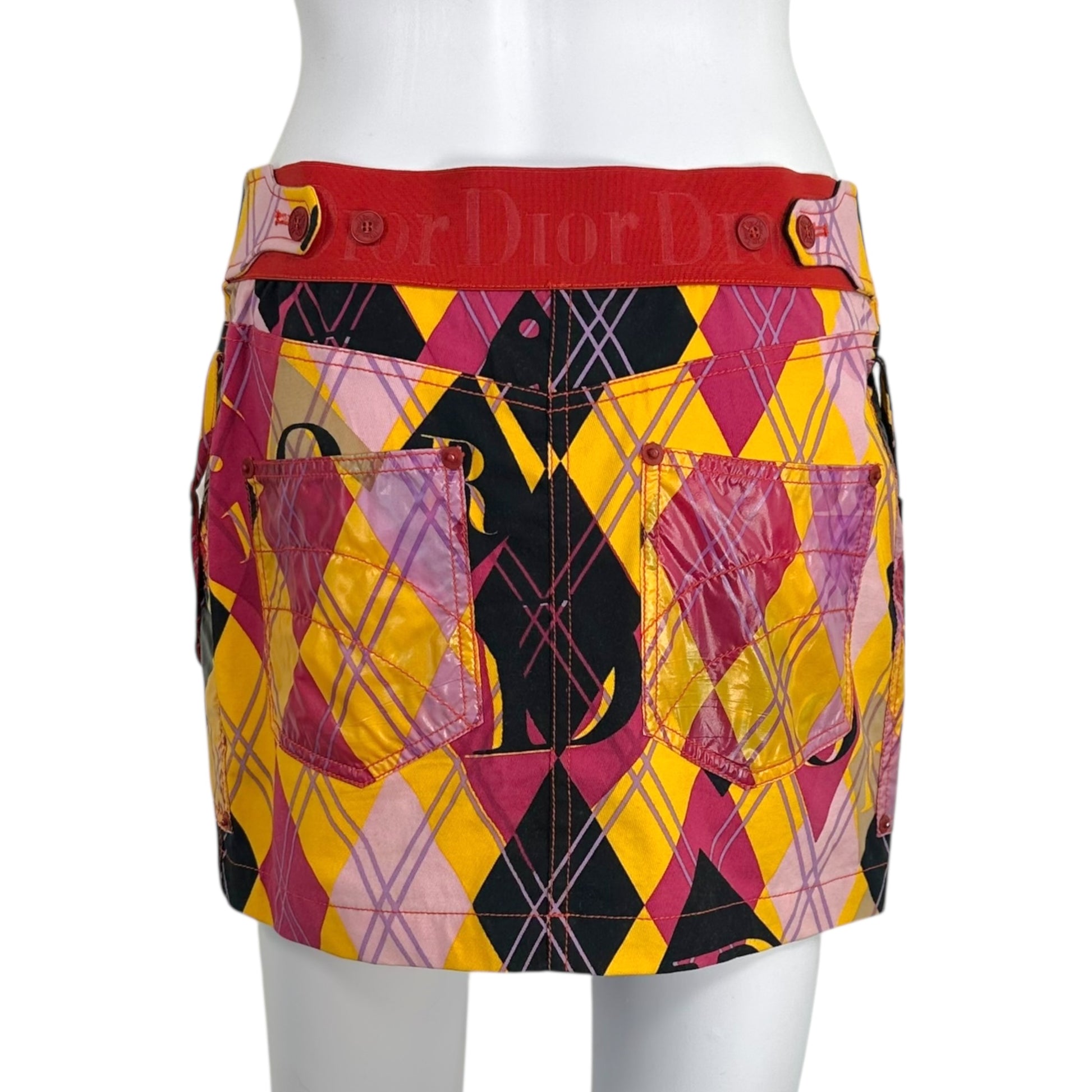 Christian Dior S/S 2004 Argyle Logo Print Mini Skirt