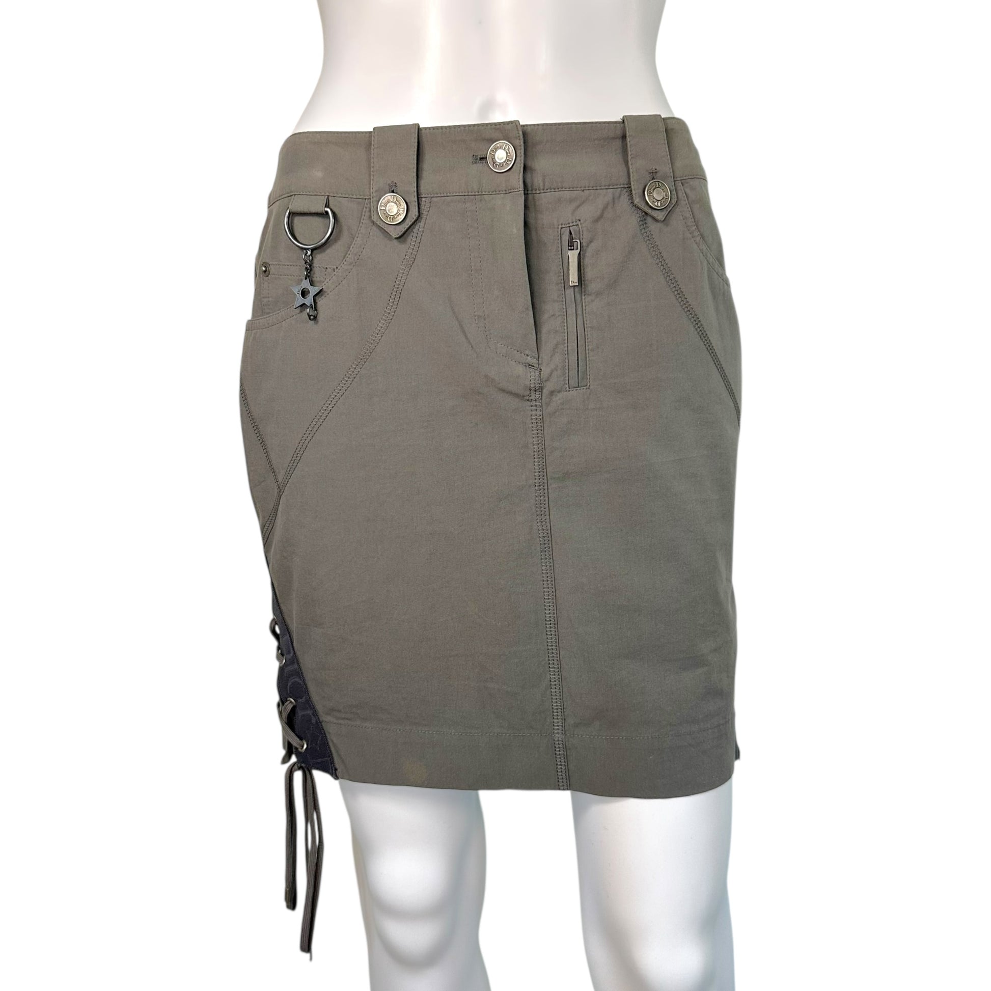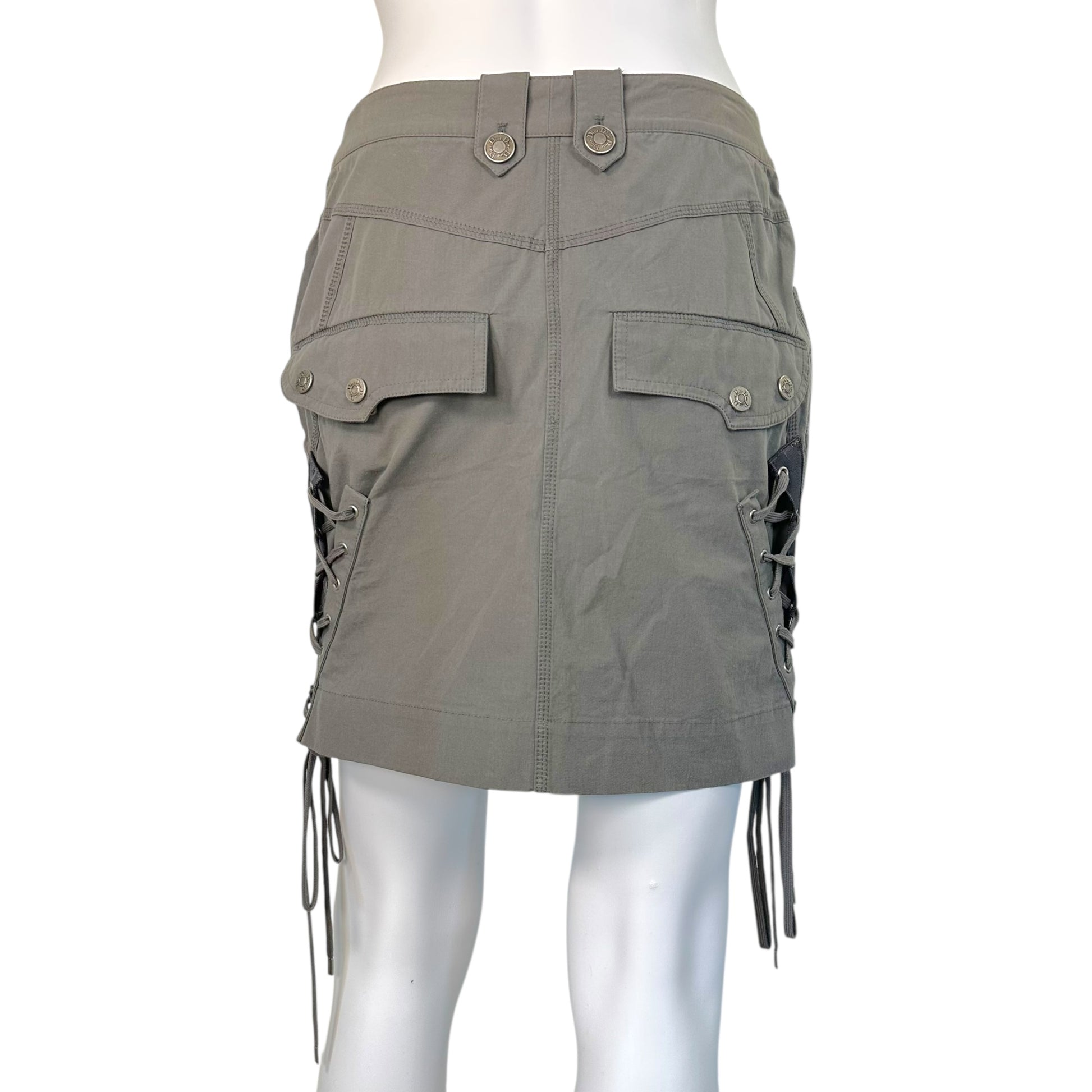 Christian Dior S/S 2004 Gray Lace Up Denim Midi Skirt