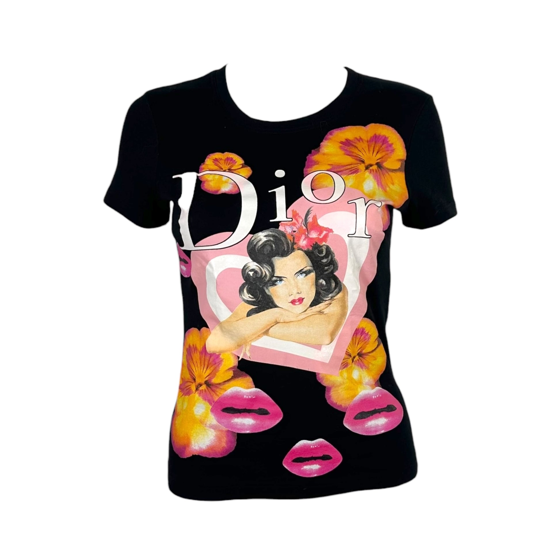 Christian Dior S/S 2005 Black Lips Graphic Logo T-Shirt