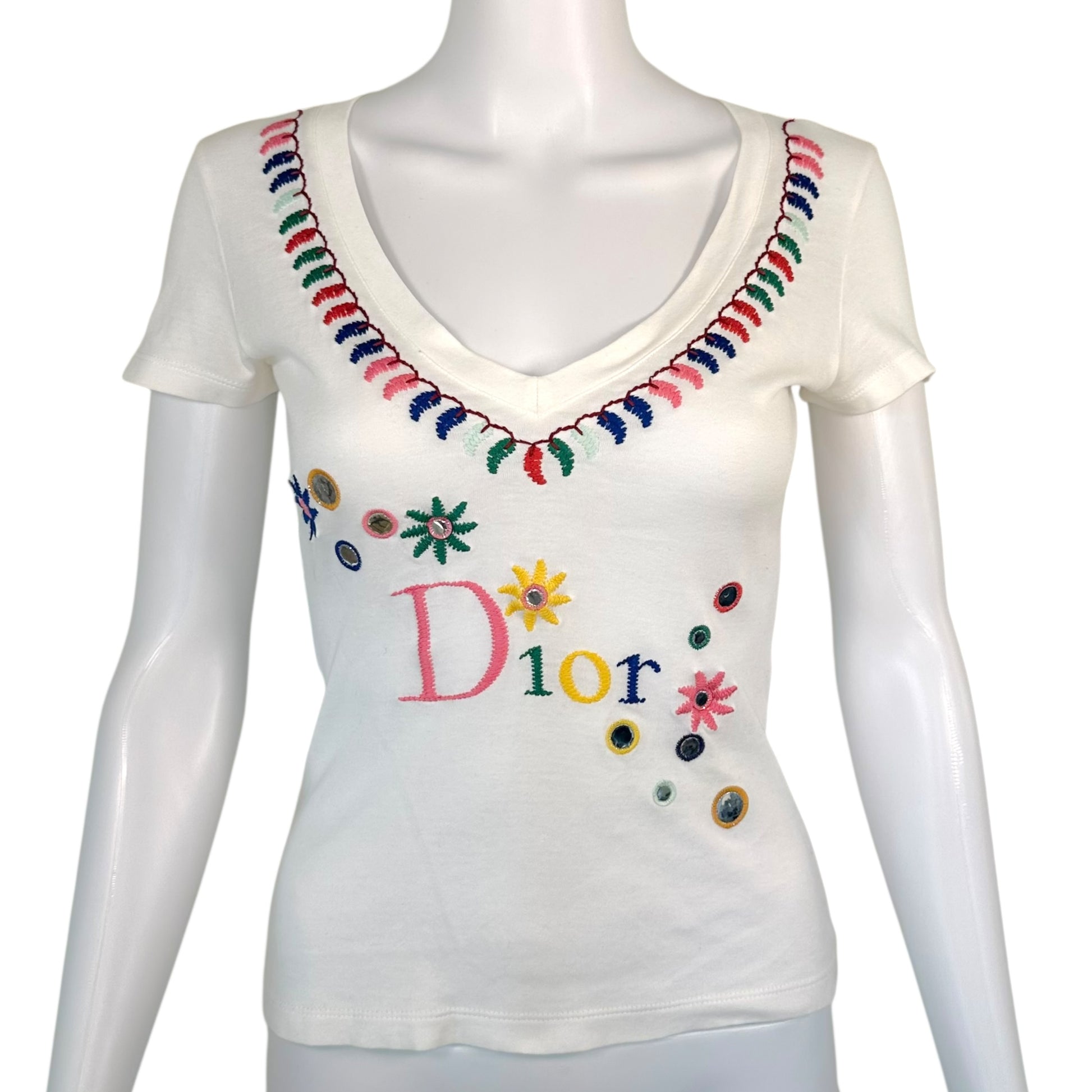 Christian Dior S/S 2005 Multicolor Embroidered V-Neck Logo T-Shirt
