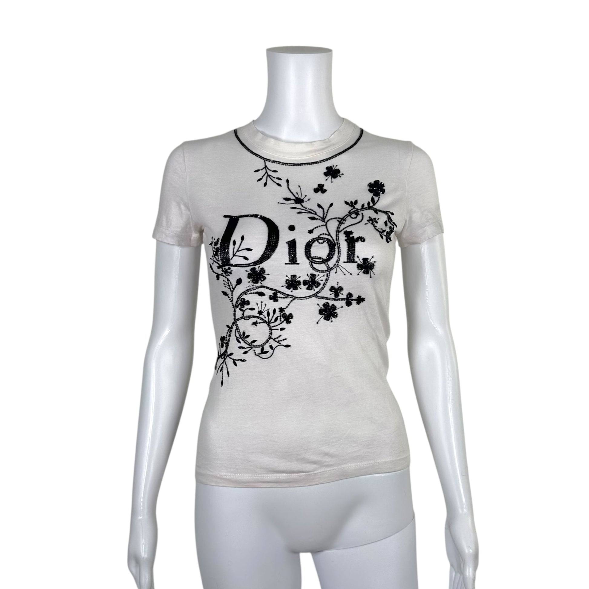 Christian Dior S/S 2006 Black & White Beaded Logo T-Shirt