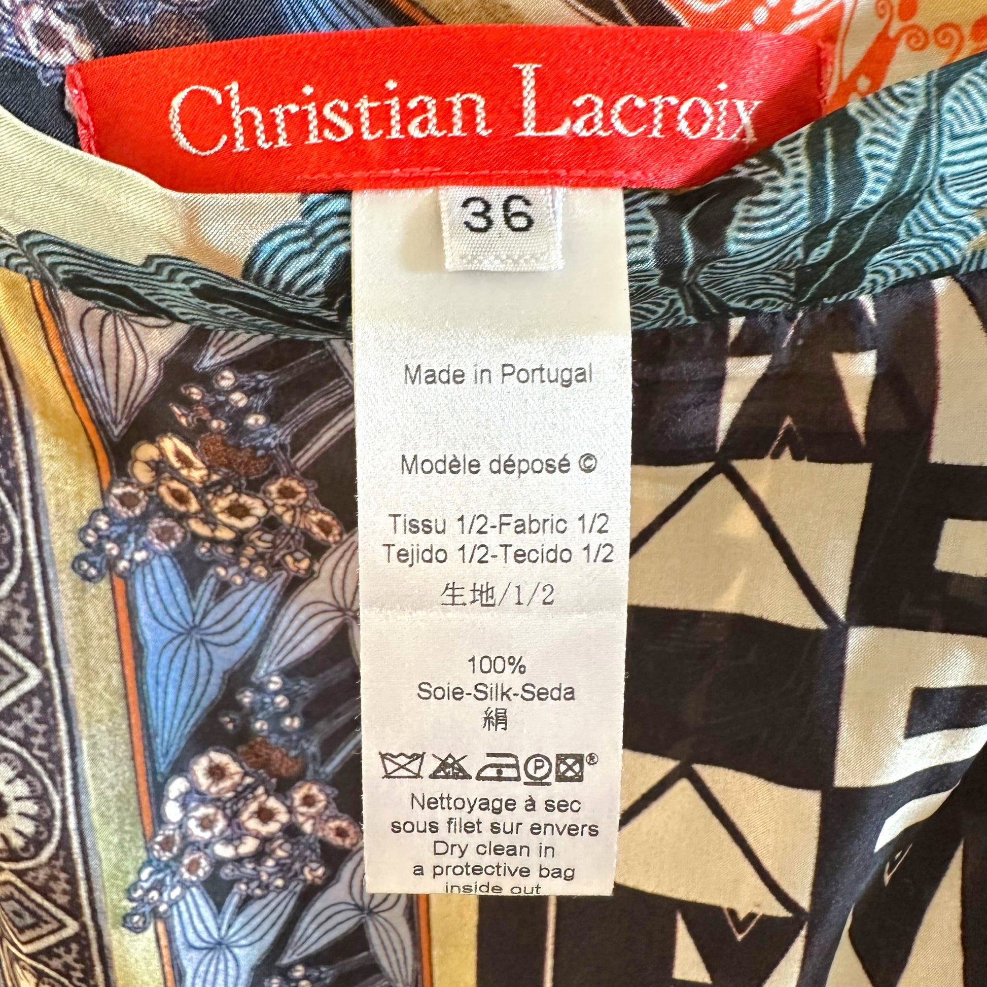 Christian Lacroix Multi-Print Tiered Silk Ruffle Midi Skirt
