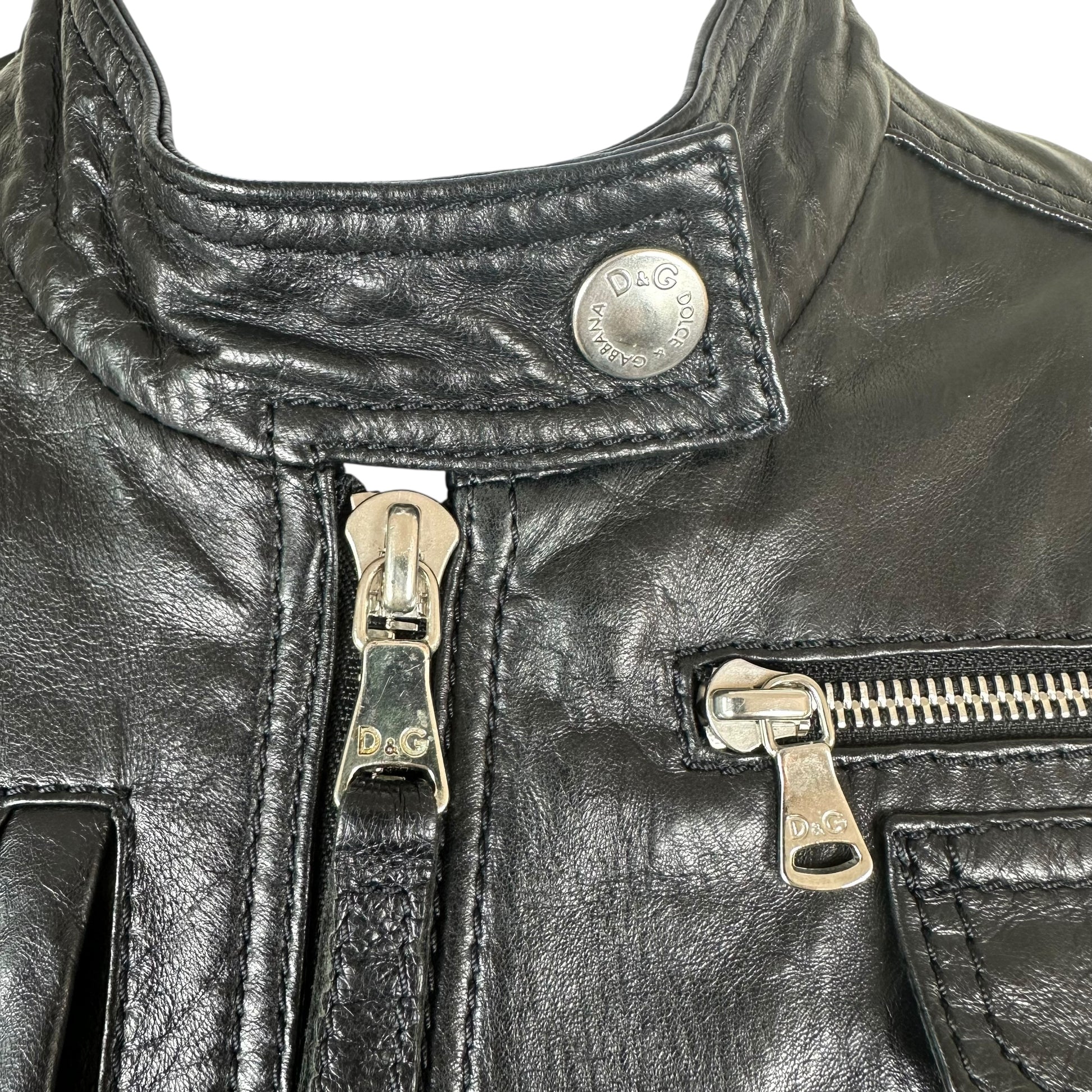 D&G Dolce & Gabbana Black Leather Cargo Pocket Jacket