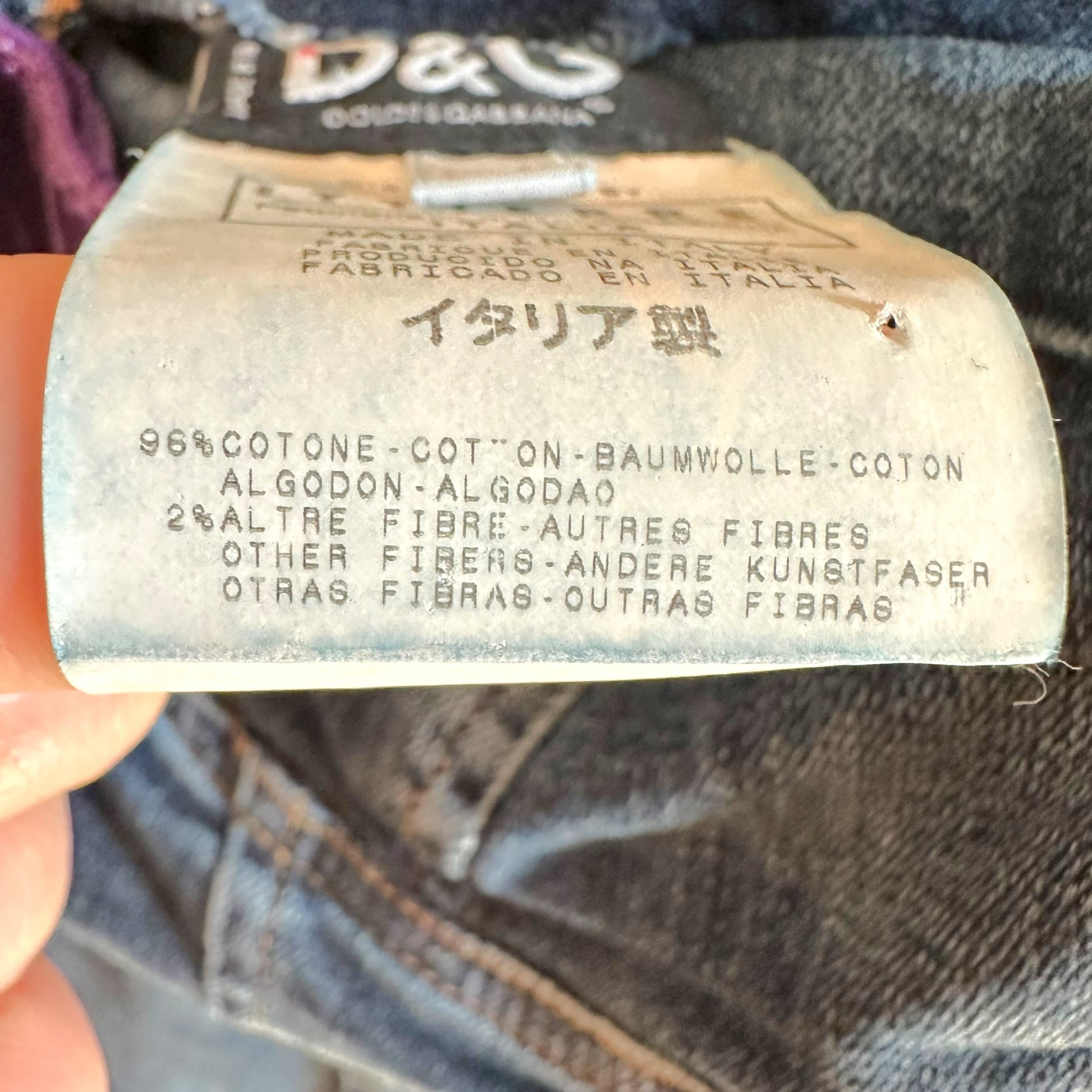 D&G Dolce & Gabbana Dark Wash Denim & Purple Velvet Bow Corset Top