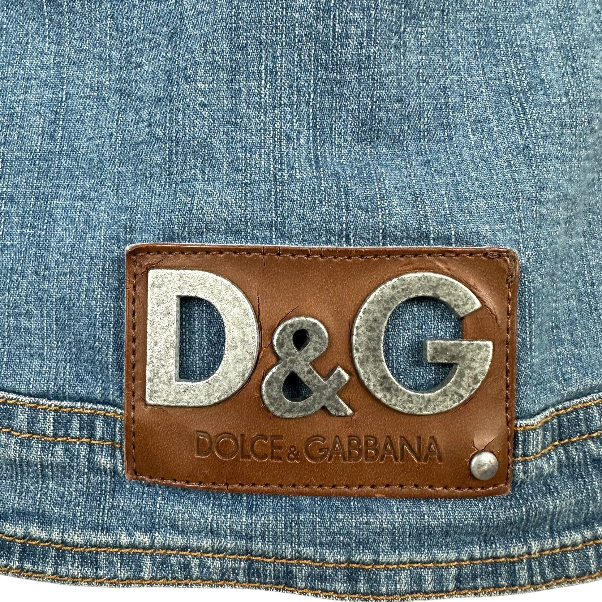 D&G Dolce & Gabbana Denim Rivet Embellished Blazer Jacket