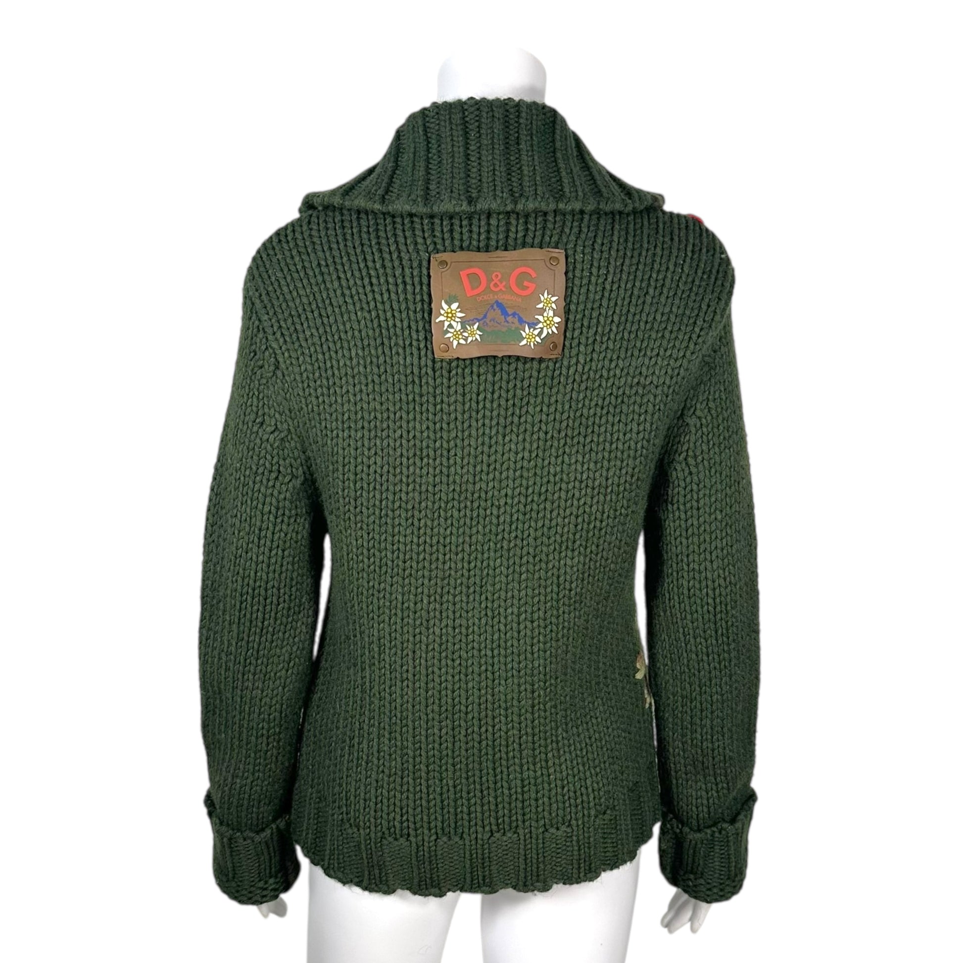 D&G Dolce & Gabbana F/W 2002 Green Knit Floral Pullover Sweater