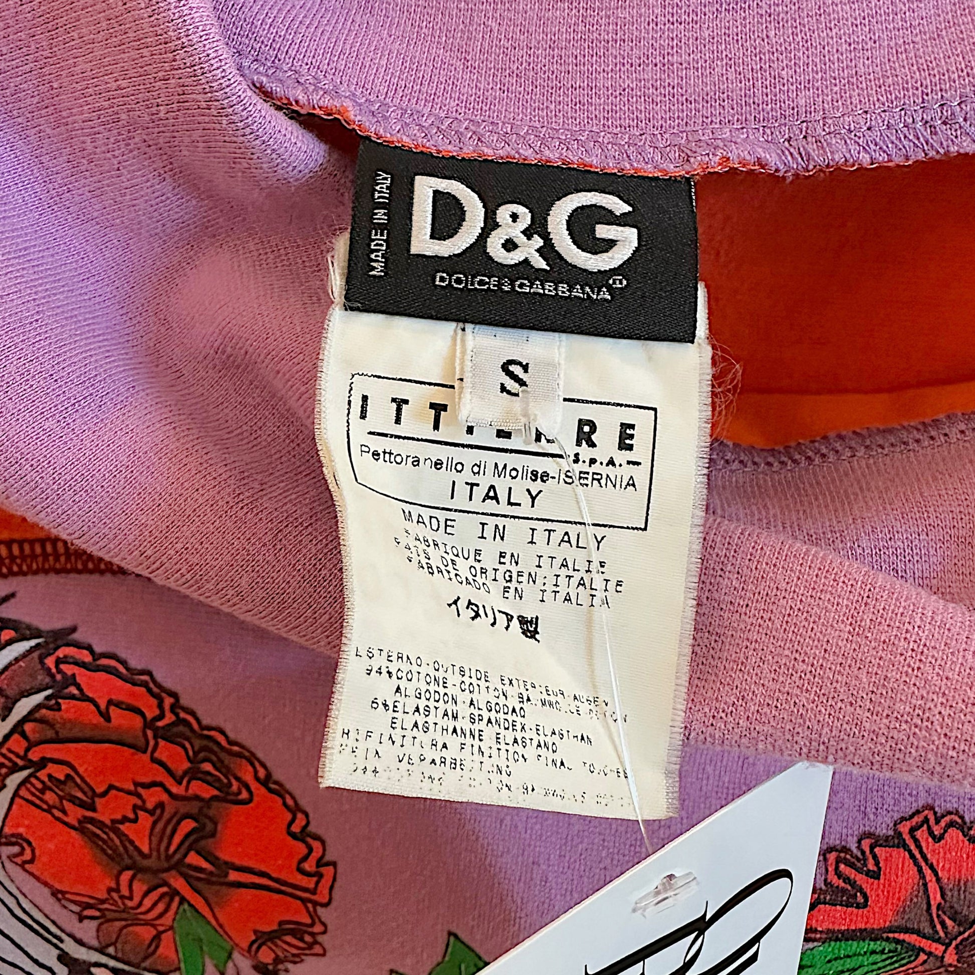 D&G Dolce & Gabbana Purple & Orange Logo Print Off Shoulder T-Shirt
