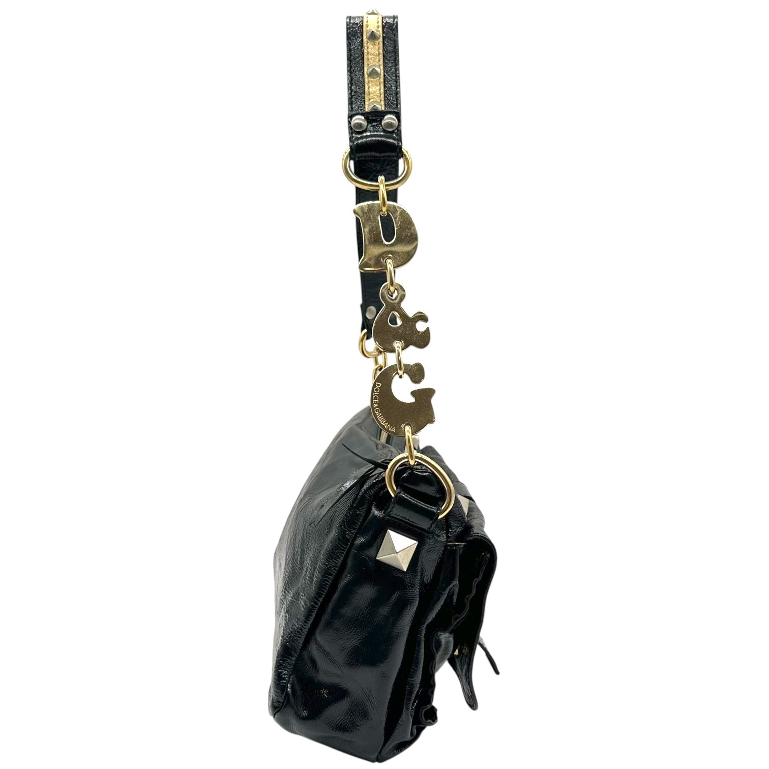 D&G Dolce & Gabbana Studded Patent Leather Logo Strap Bag
