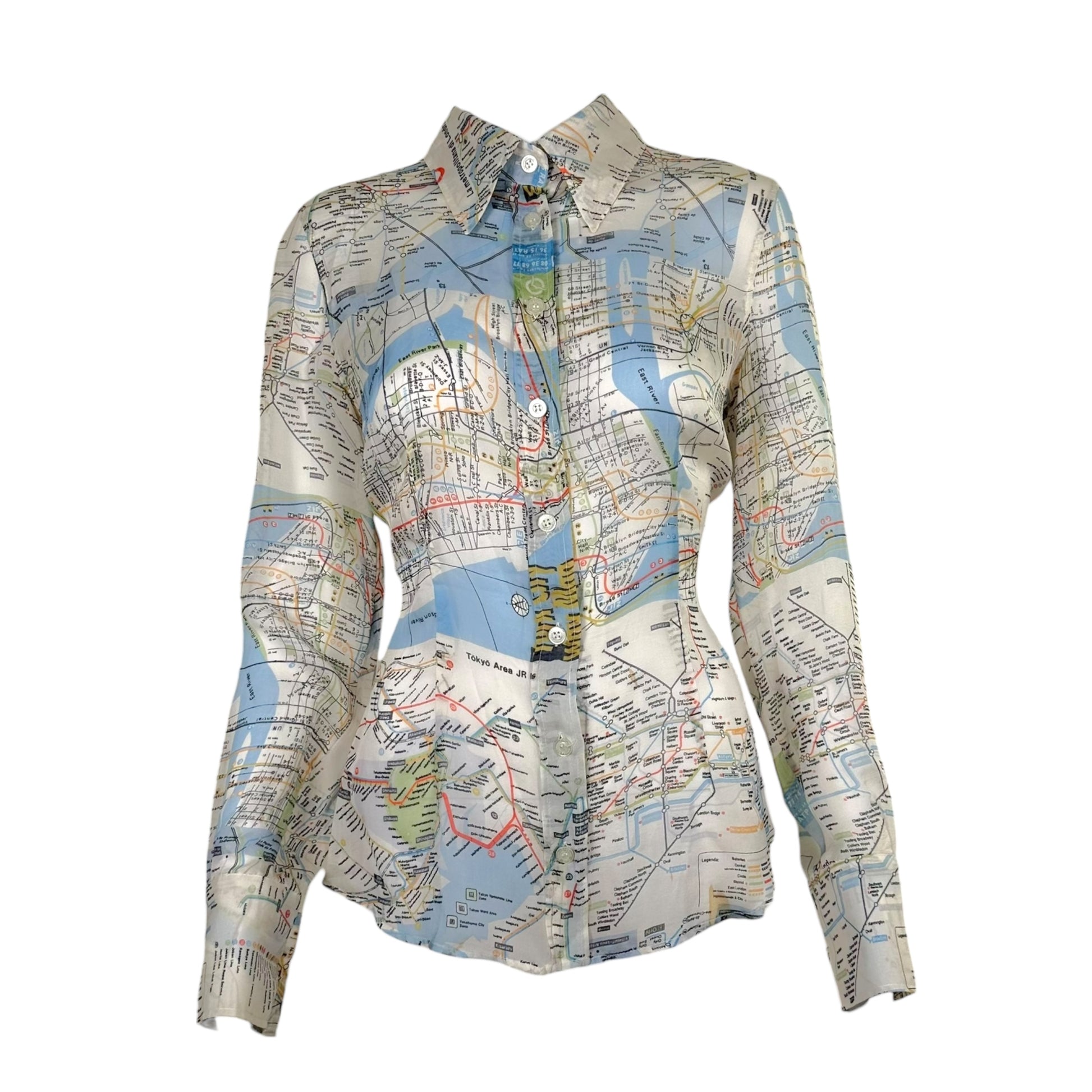 D&G Dolce & Gabbana Subway Map Sheer Silk Blouse