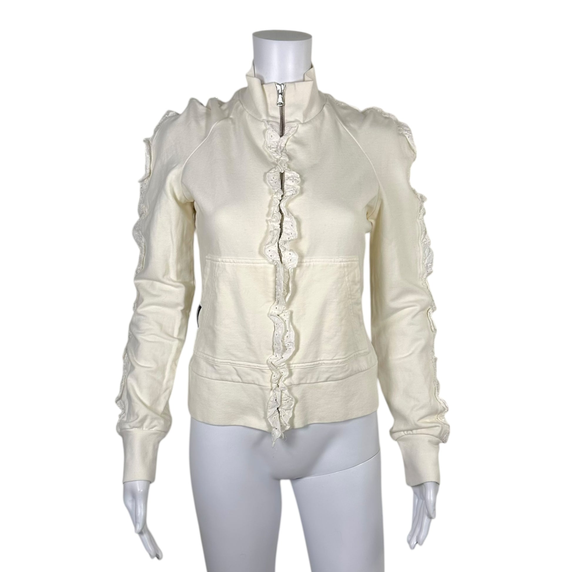 D&G Dolce & Gabbana White Scalloped Eyelet Trim Sweatshirt