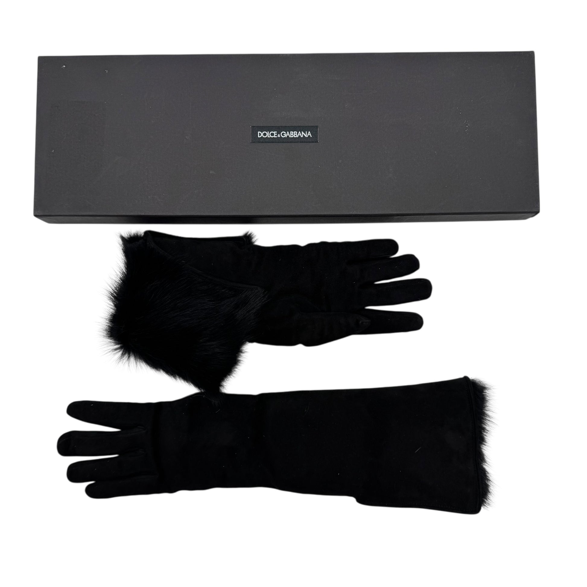 Dolce & Gabbana Black Fur Trim Sheepskin Gloves