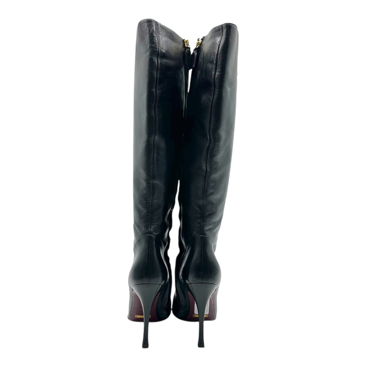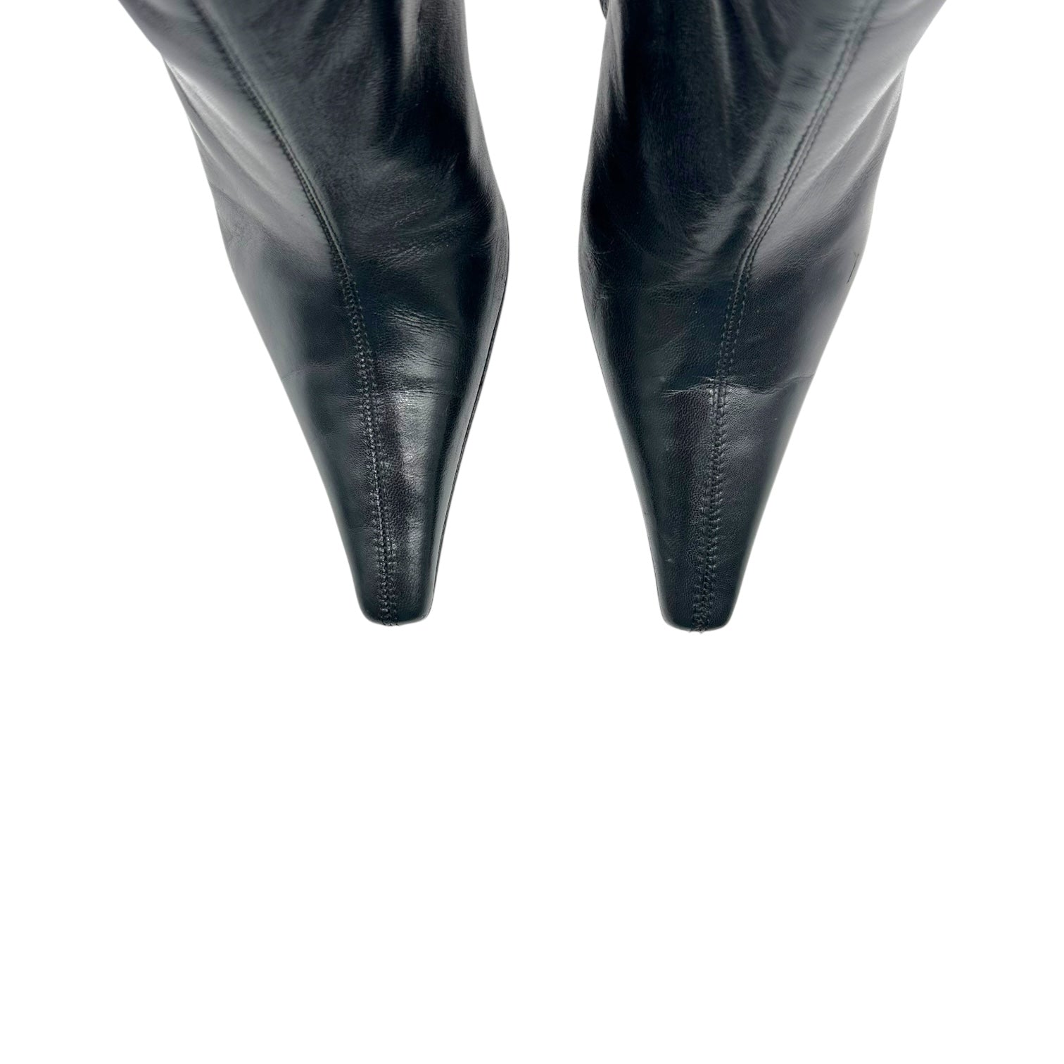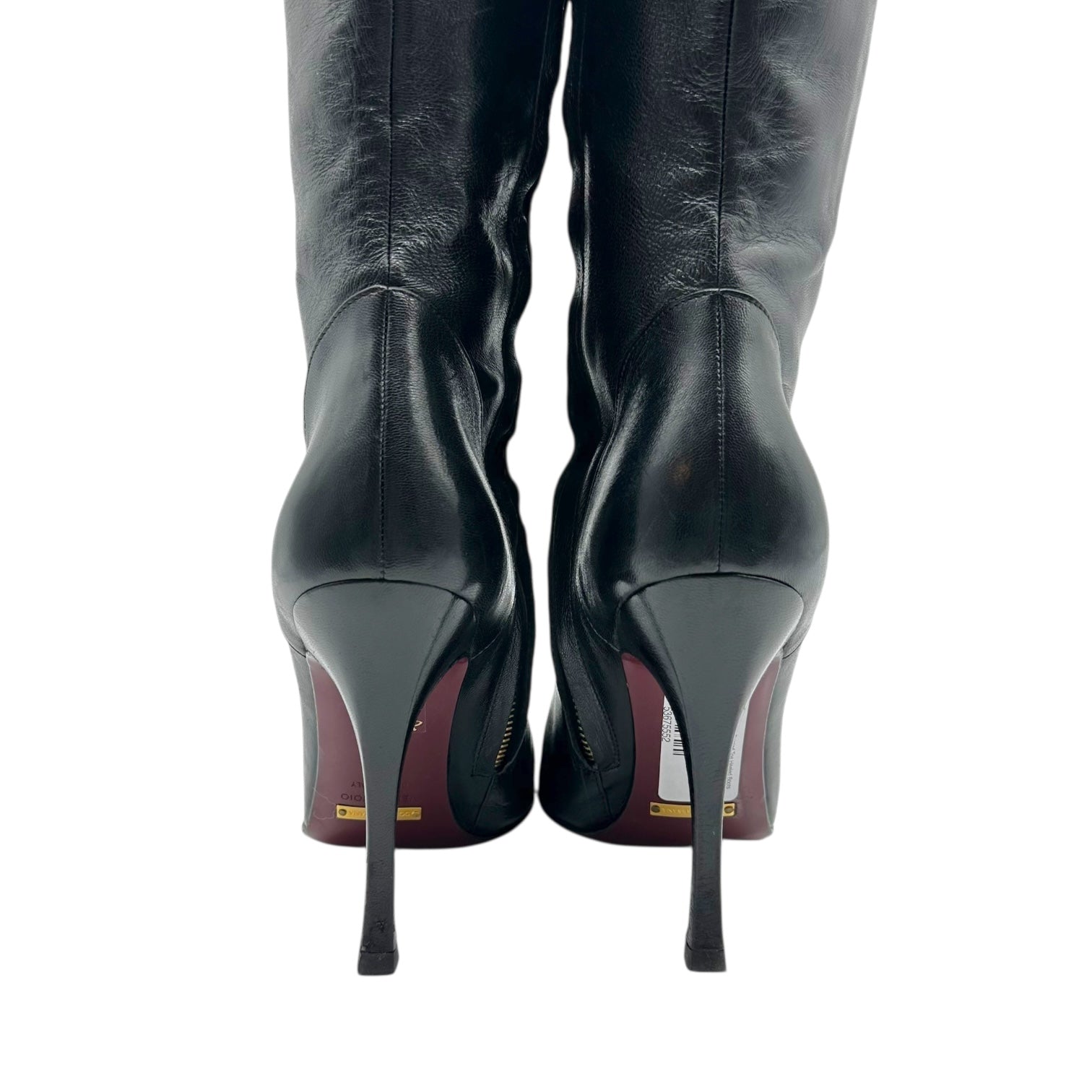 Dolce & Gabbana Black Knee High Pointed Toe Heeled Boots