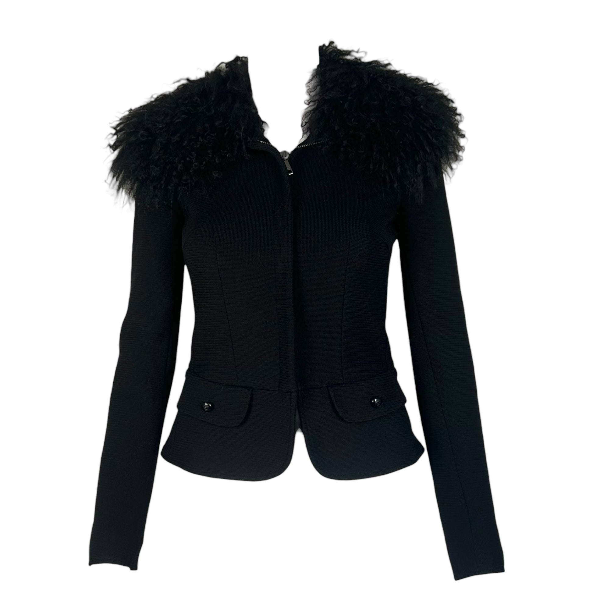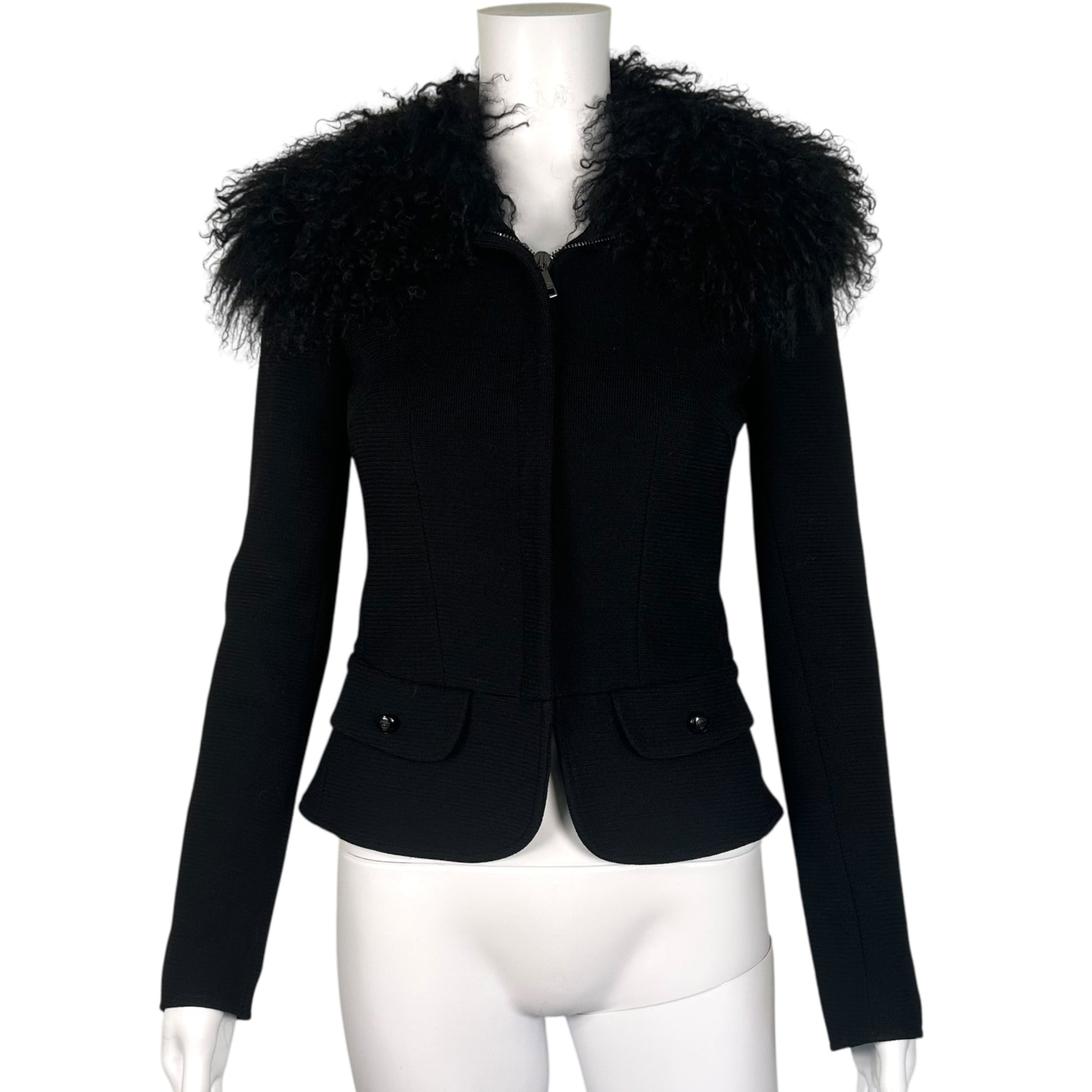 Dolce & Gabbana Black Wool Jacket w/ Mongolian Fur Collar