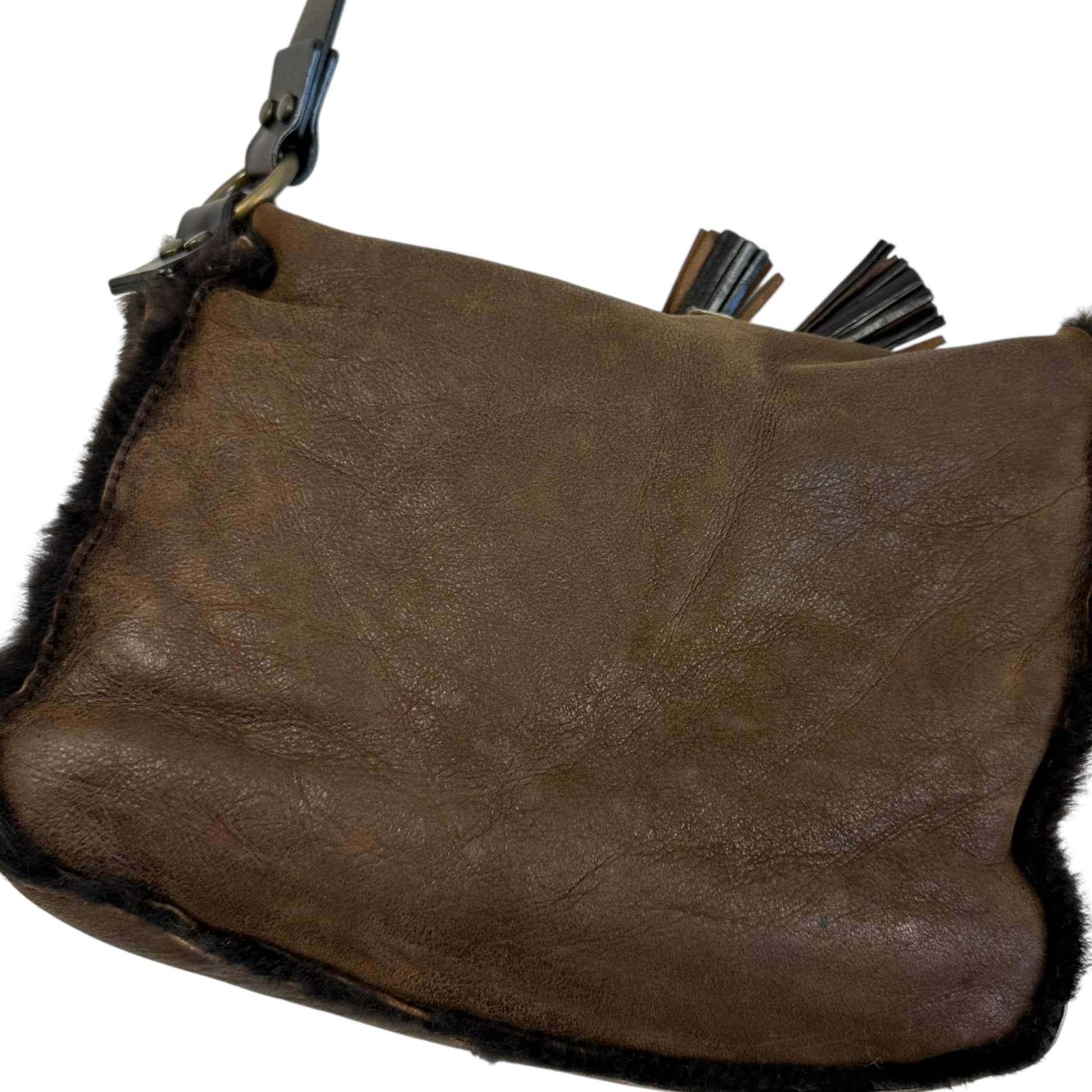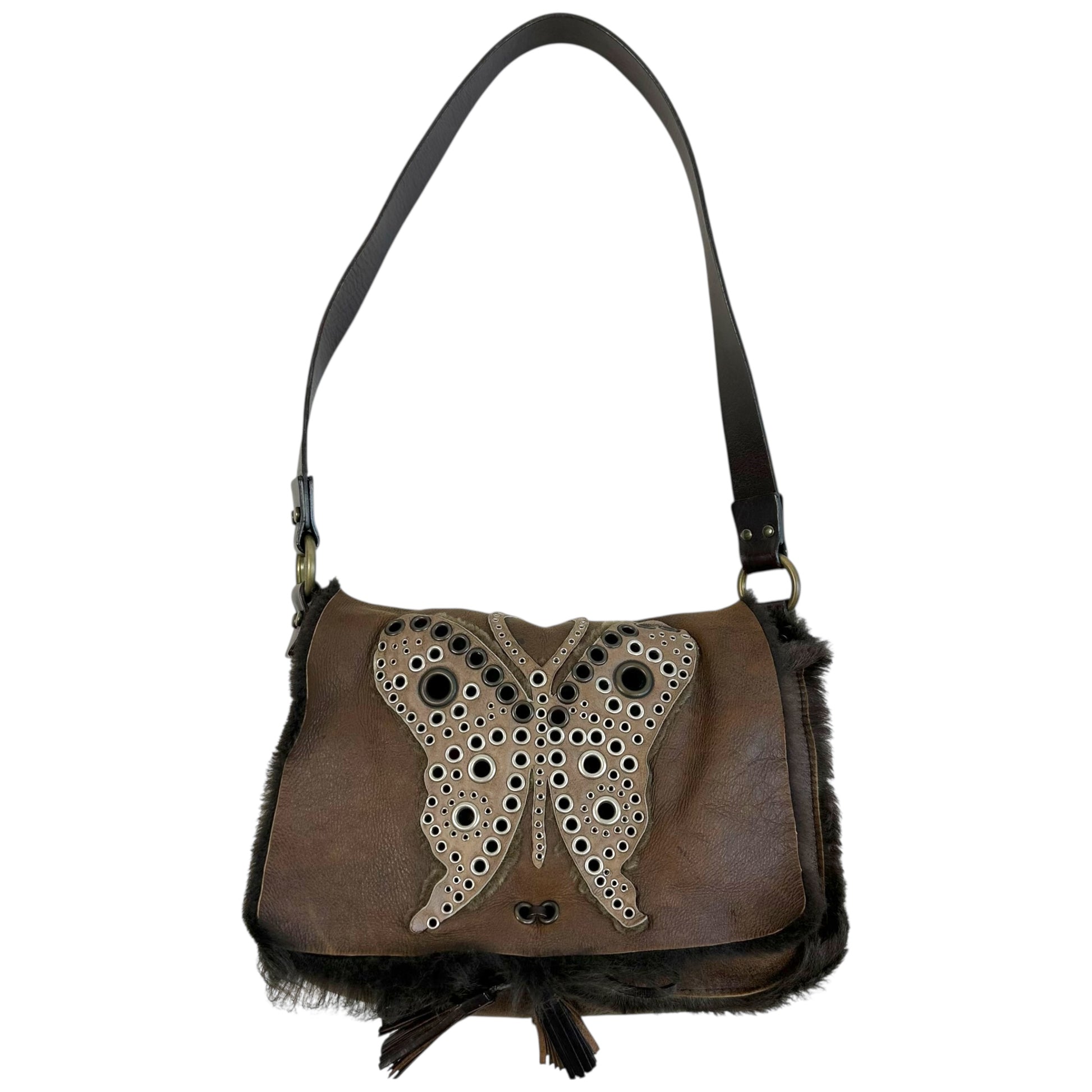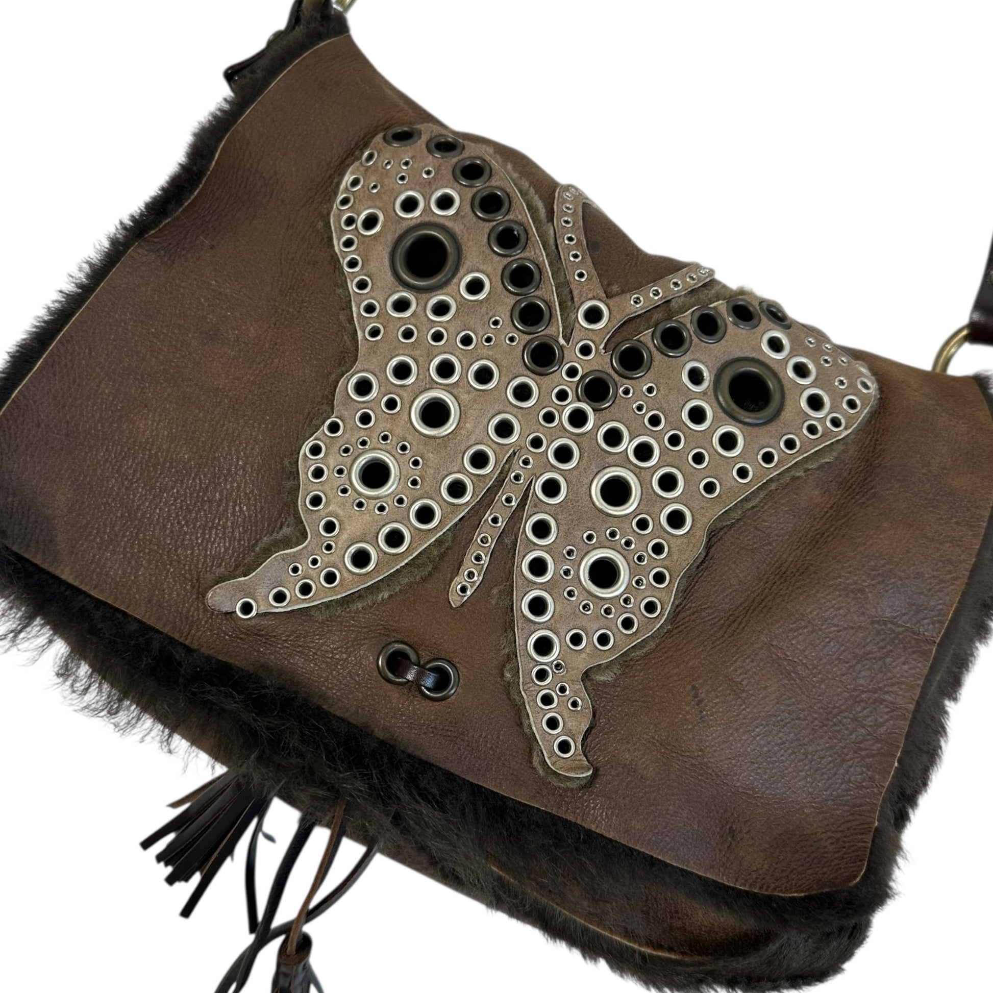 Dolce & Gabbana Brown Shearling Butterfly Messenger Bag