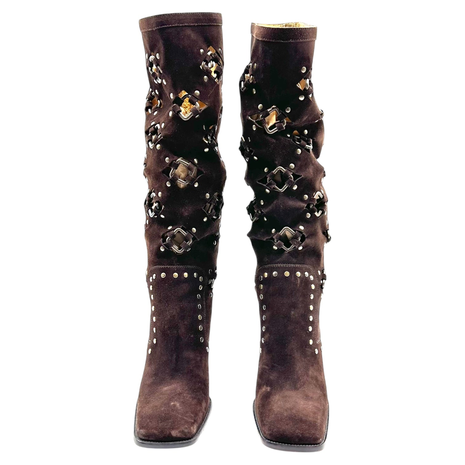 Dolce & Gabbana Brown Suede Cut-Out Heeled Slouch Boots