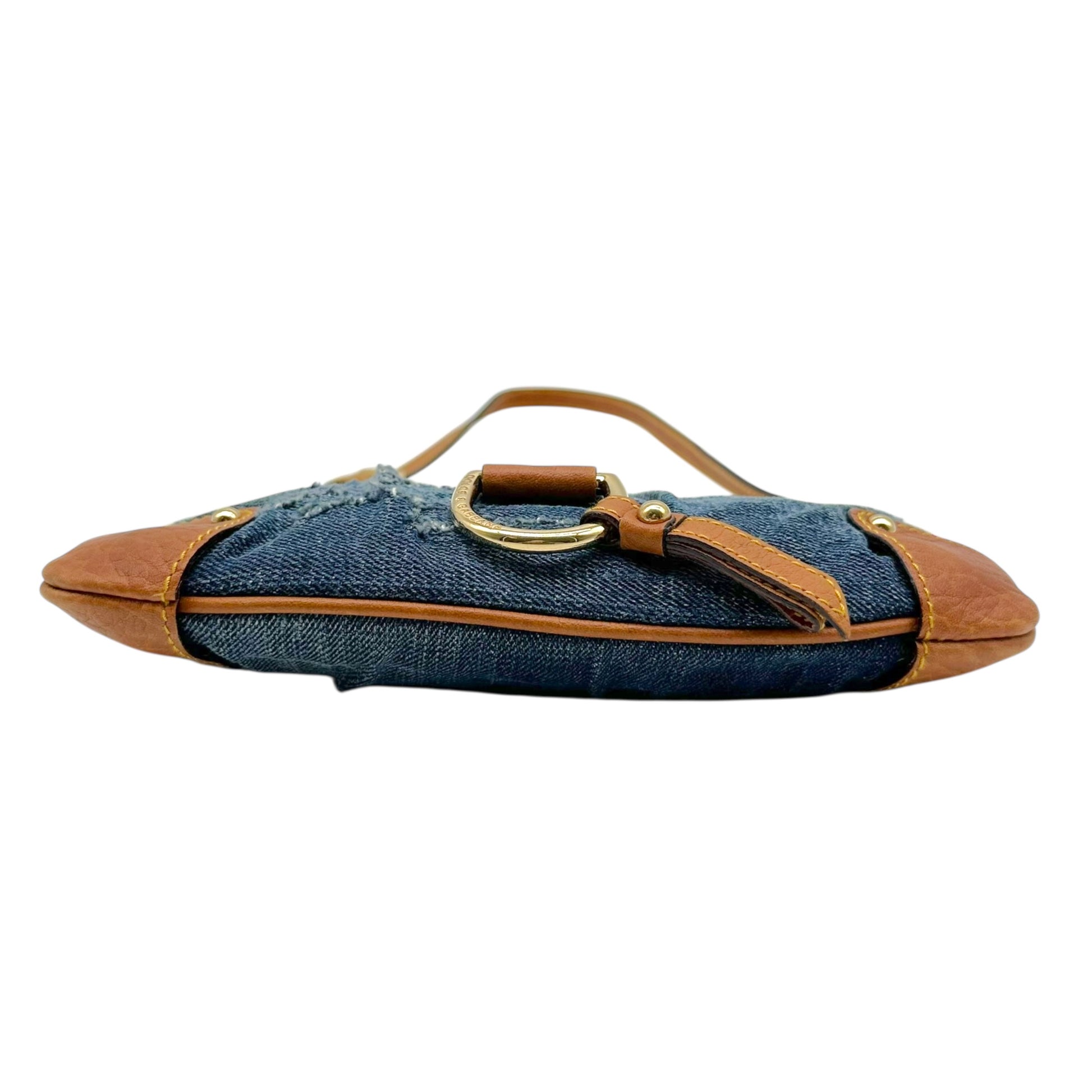 Dolce & Gabbana Distressed Denim & Brown Leather Mini Shoulder Bag