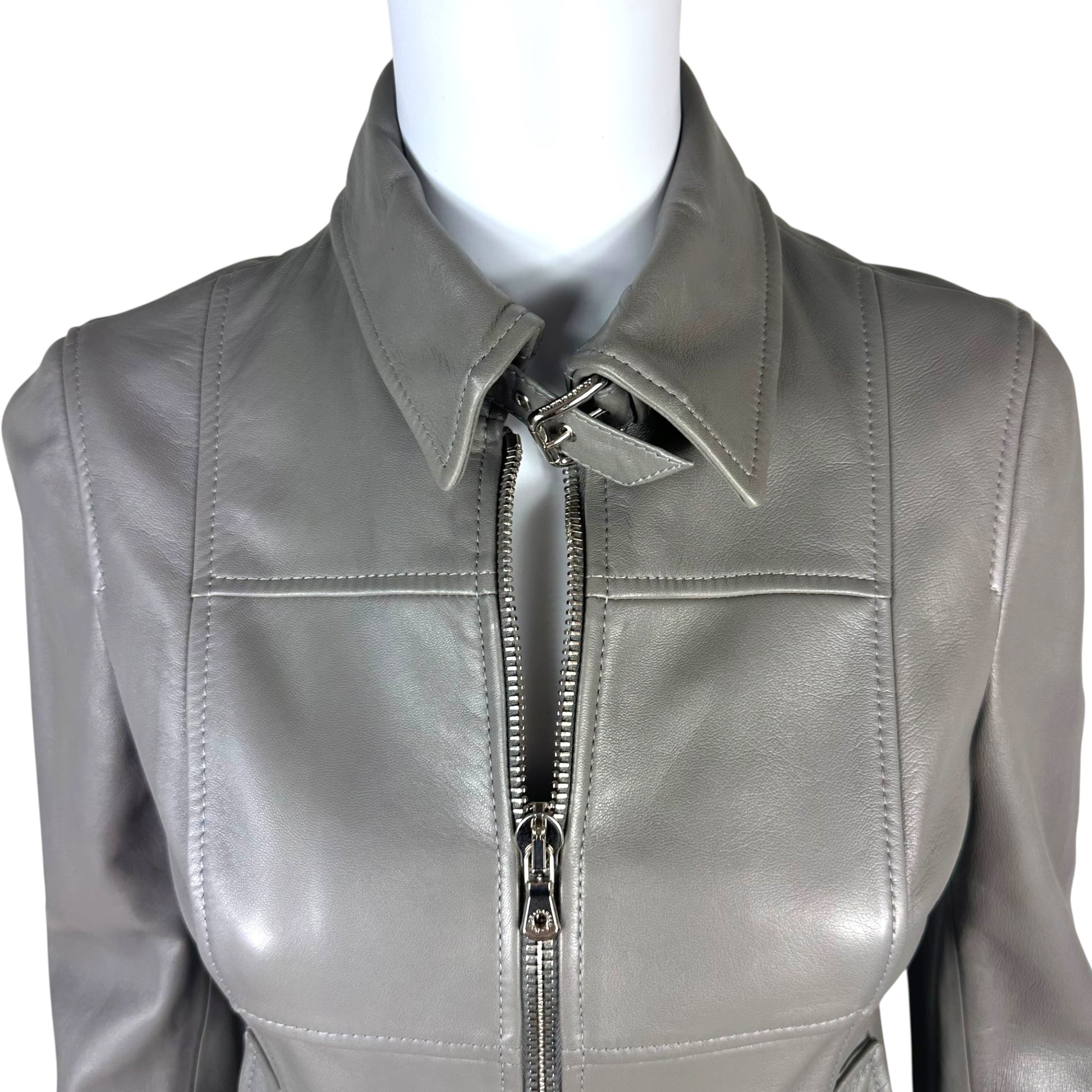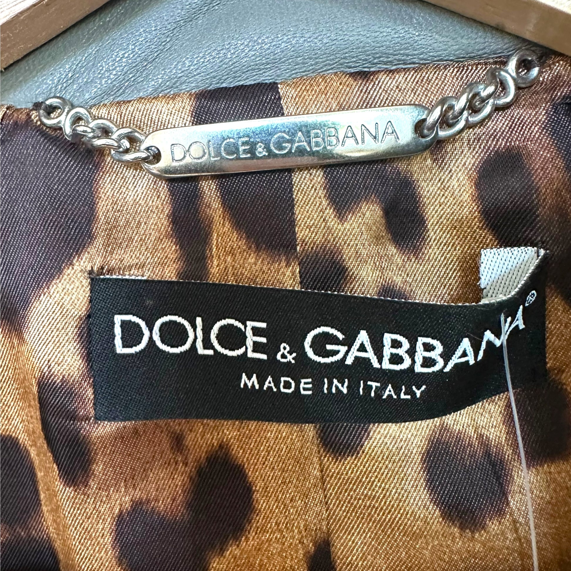 Dolce & Gabbana Gray Leather Jacket w/ Logo Charms