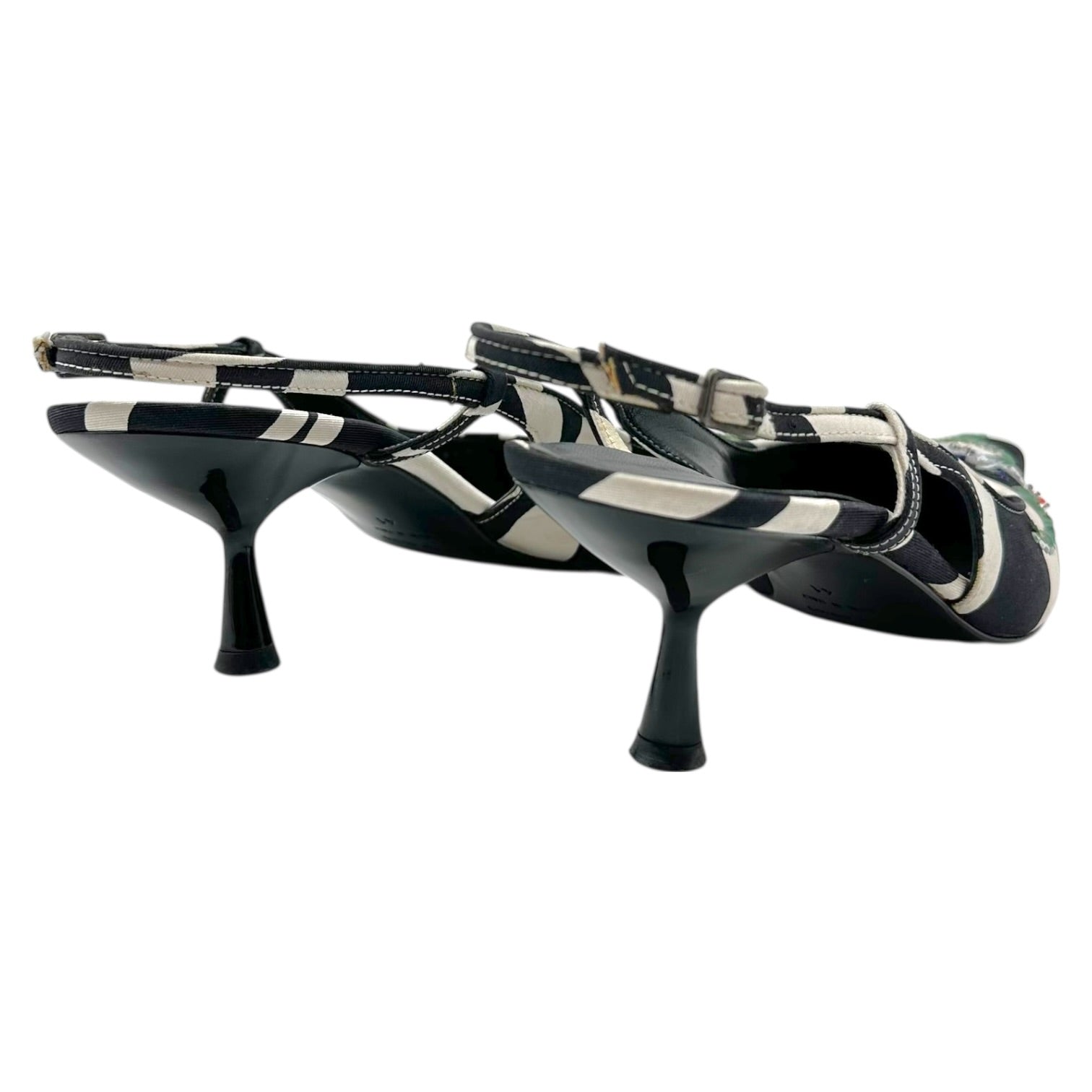 Dolce & Gabbana Zebra Print Silk & Sequin Slingback Kitten Heels